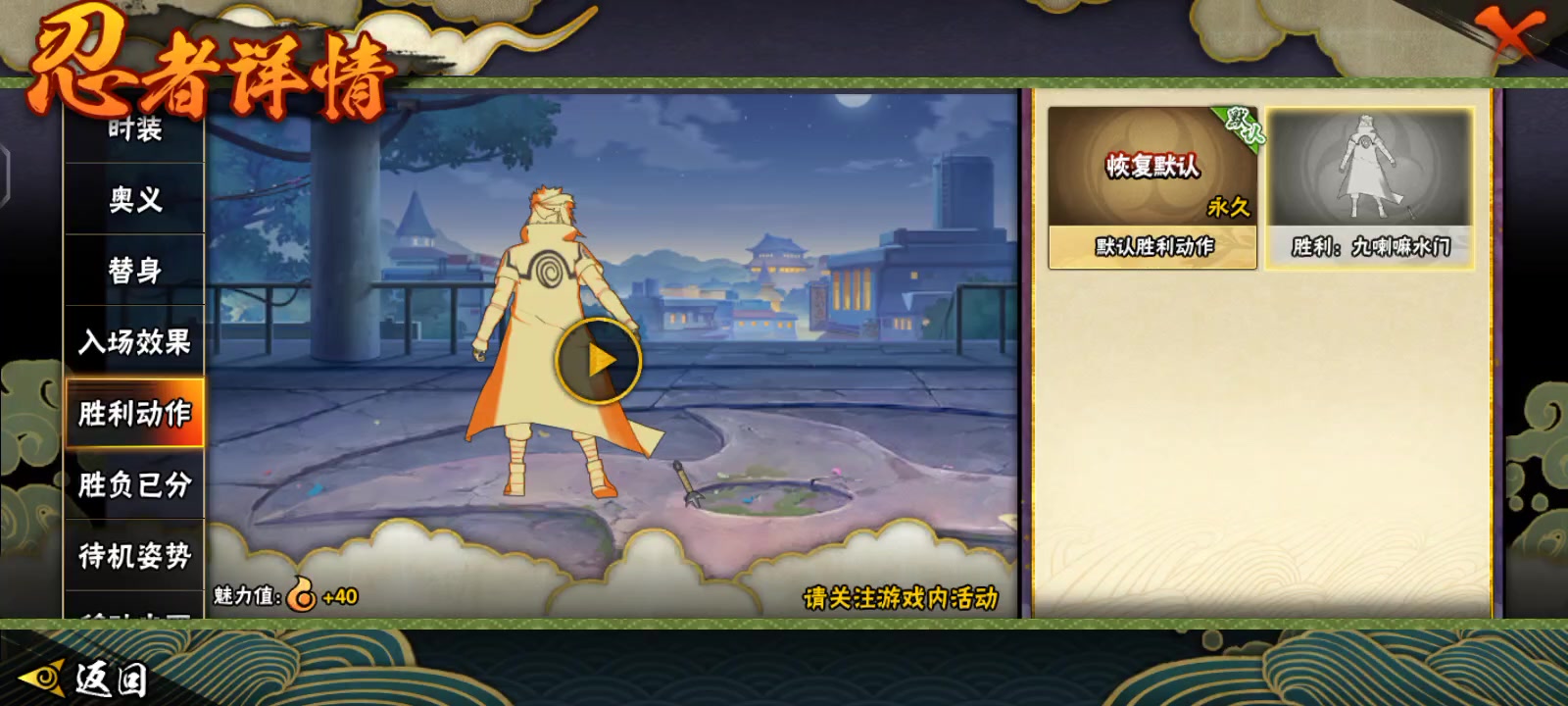 我觉得这里就不应该改的,原本那样就挺好,可以直接看到胜利动作,现在还要点进去还要加载,退出来也是,反正我感觉弄得不方便了#火影忍者