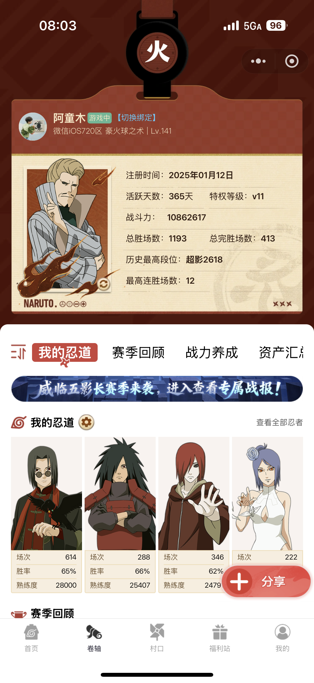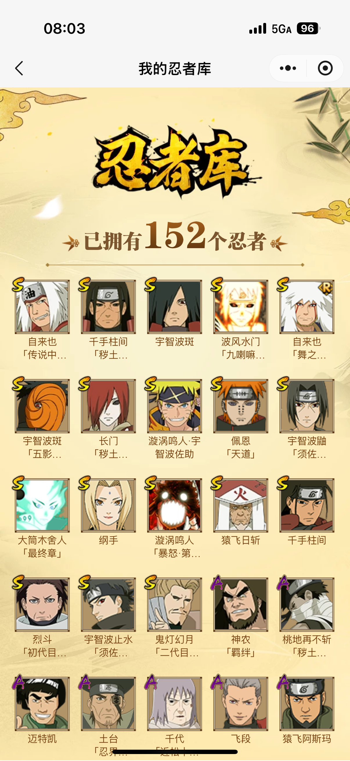 我现在有1980点卷了,是拿下黑绝,还是拿下五影会谈斑啊,我已经预购了下一期的神驹斑,如果拿下五影会谈斑的话,下一期还可以补一个之前的老忍法贴S,所以现在有点纠结😖