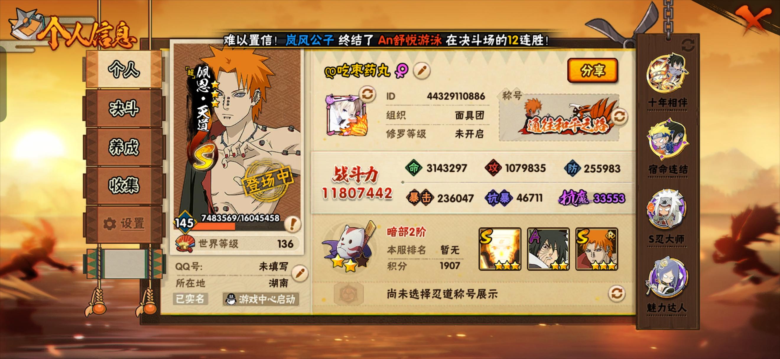 玩了个两年多了,这个战力和忍者正常吗(我不玩战力啥的,暴击高我也知道大佬勿喷)#火影忍者手游