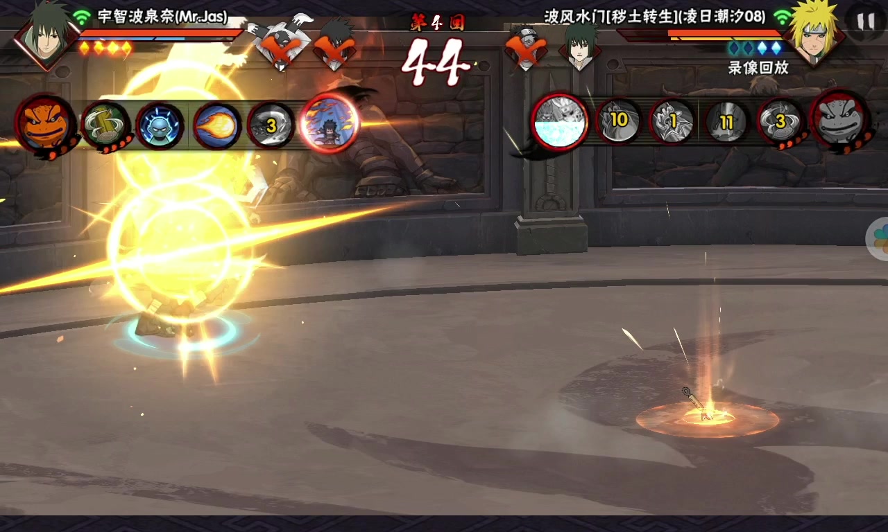 十尾带土可以使用以阴阳遁为基础的求道玉,求道玉可以变化成各种形态,求道玉的攻击还可以降低敌人的血量上限,并且让敌人无法恢复血量,兼具破坏力和防御力。屏幕下方的4个图标分别代表十尾带土普攻的后4A,每按一次普攻,光圈都会圈中下一段即将释放的普攻(即会跳至当前一A的下一A),登场时默认光圈在2A位置,完整使用完一套普攻后光圈回归初始位,若在普攻过程中停手,则光圈跳动停止,再次进行普攻后光圈会重新跳动轮