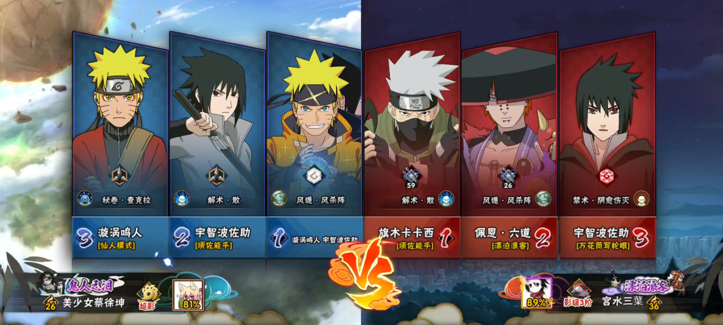 漩涡鸣人·宇智波佐助装备传说时装“宿命连结”同样为双人作战忍者,学员们可以在忍者界面和备战界面切换角色登场顺序。两个角色共用CD、奥义点,且双方拥有独立血条,普攻、技能均不同。在角色普攻或释放技能时可点击奥义键切换角色;豚豚小提示:若在攻击时换人,原本角色在打完当次攻击后才会消失哦!鸣人或佐助血条下方各自有两格能量条,能量各自独立不共用,每次释放技能会消耗一格能量,当前登场角色的能量随时间缓慢恢
