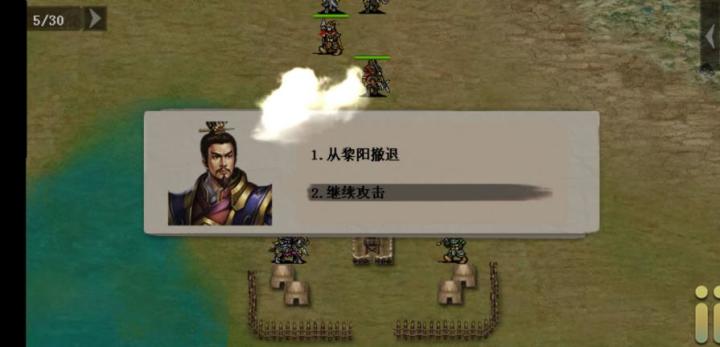 第三十三关 冀州进取战一(共30回合)宝物:风神盾(辅助攻击法术格挡20% 全灭敌军)成就:1、《一鼓作气》冀州进取战一中全灭敌军过关2、《作壁上观》冀州进取战一中撤退过关单挑:徐晃VS汪昭战场:开场我军出现在右下角,第四回合徐晃部出现在汪昭营寨背后的河里,河边的四个骑兵混乱,徐晃单挑汪昭。不过一般玩家都不会等到伏兵出来,直接进攻汪昭的寨子就是了。消灭了汪昭部,大部队靠近袁谭营寨,进入营