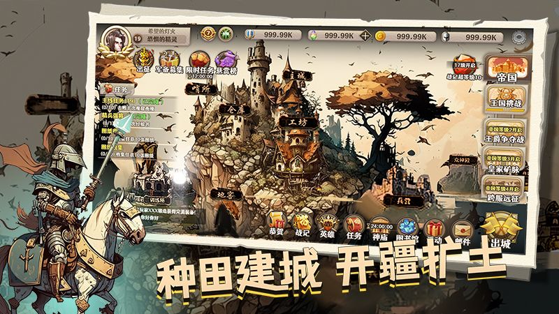 玩家作为领主将要开疆扩土,厉兵抹马,抵御魔物。随着领主等级的提升,玩家可以召唤英雄的神灵,提升战力,共御邪魔!