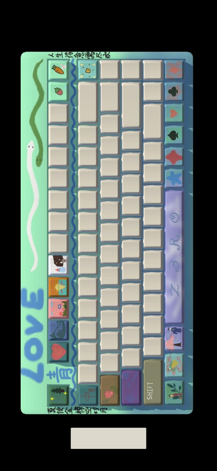 下面我就来给小伙伴们讲一下怎么玩。简单来说就是:判断按键图案,滚动方块,抵达终点,挑选并绘制按键。目的:收集按键,进行个性化绘制,可以截图分享成果1.键盘上展示已经收集到的按键,此时可以手动截图分享成果。点击屏幕下方的白色按键开始游戏2.按照提示判断两个按键图案是否相同。答对后,往前滚动一步。3.终点会有一面小旗子4.抵达终点后,按键会飞回键盘。此时可以选择按键进行收集(如选择图中蓝圈