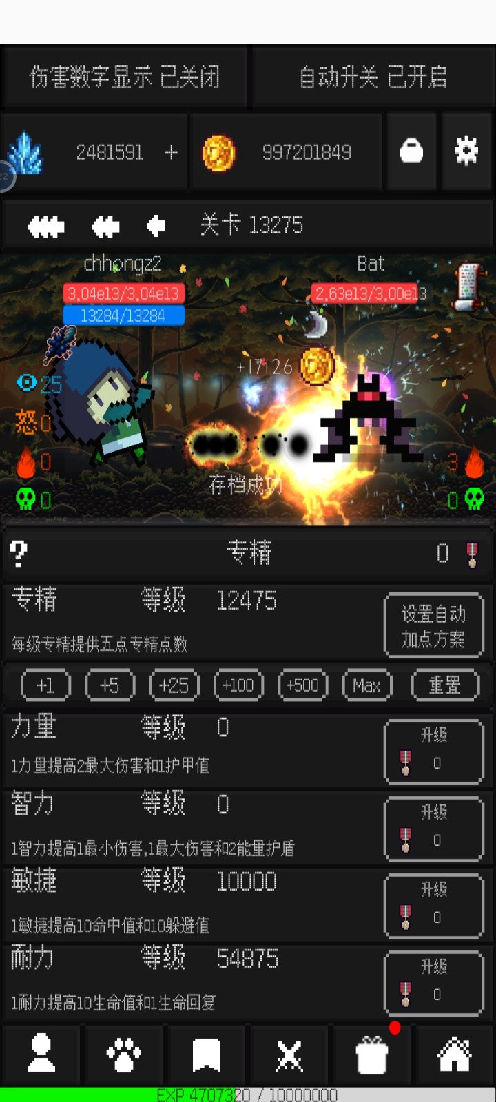 (专精加点):纯智力。因为冥王星特性。智力加成十倍。有了水星特性攻击必定中。不用担心怪物的闪避和回闪。