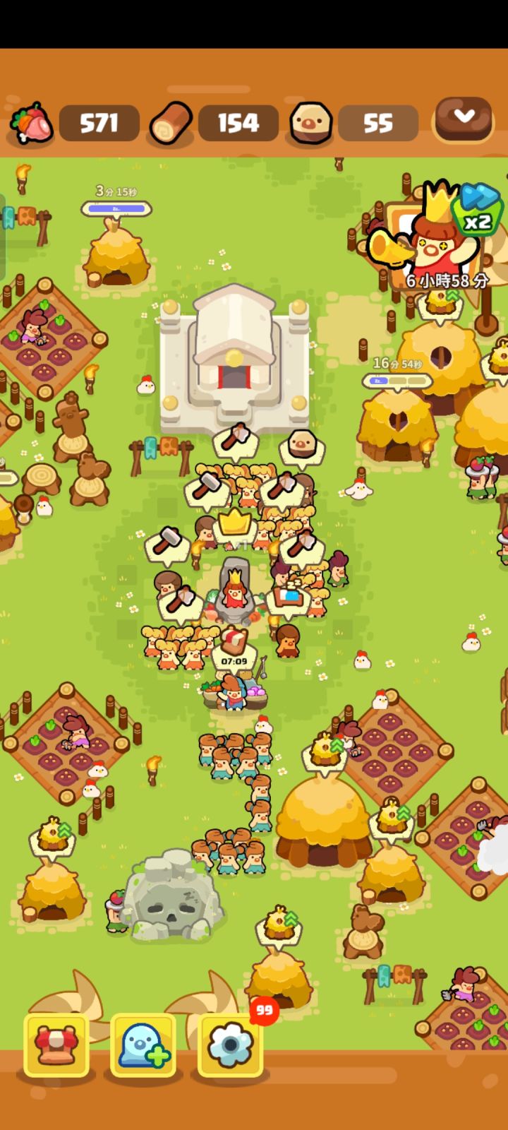 这个游戏想玩的开心一定要充分利用看广告来及时补足物资和体力(后期主要是非常需要大量食物 用来增加各种工种的人数)