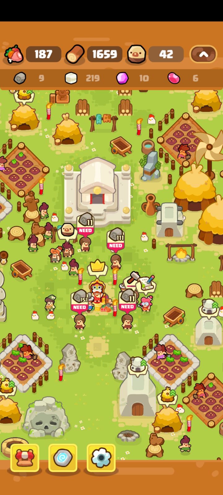 顺便每个工种我也完全找不到是否有人数统计这种东西…但是现在算是没有/找不到的情况下 真的很困扰!因为有几个工种人数已经严重超标物资都收集完了 他们只能在游戏里面一直绕着国王跑圈…而其他工种又非常缺人 但是因为没有统计 每次开启游戏时就会因为忘记到底是缺哪个工种 哪个工种超标而买错…明明缺人 却只能看着一堆超标的工种在那边跑圈…太心塞了
