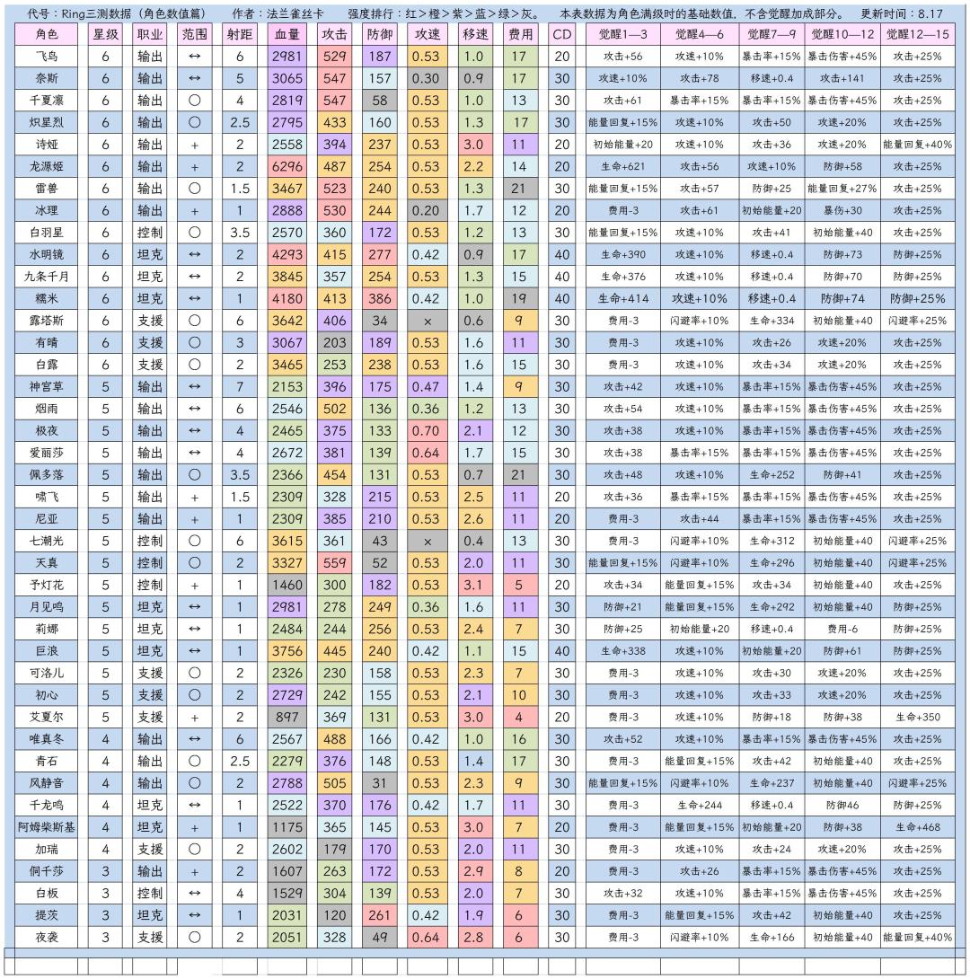 【Ring三测】角色数据汇总整合1.0版(全部填充完毕)