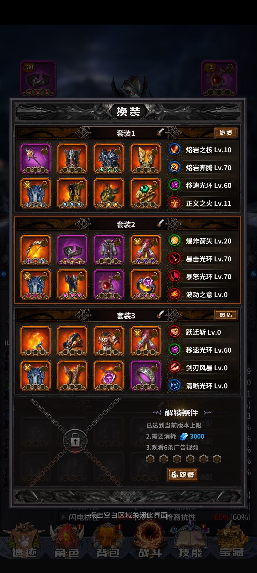 点击只看楼主方便观看后续楼层 1楼(本楼)75级的常规技能装备组合选择 2楼-广告宝藏相关 9楼-50级前攻略以及兑换码 10楼-装备刷取方案 11楼-装备词条取舍 16楼-115级以后的挂机记录相关(含操作视频) 50楼-天赋(暂时只有爆炸箭、熔核) 需知:装备上的怪量是进图属性,依据这个可以怪量套装进图然后切换成打宝/记录套,可以用于封渊,失落,刷记录等情况。 由上可得,准备三套装备。 第一套