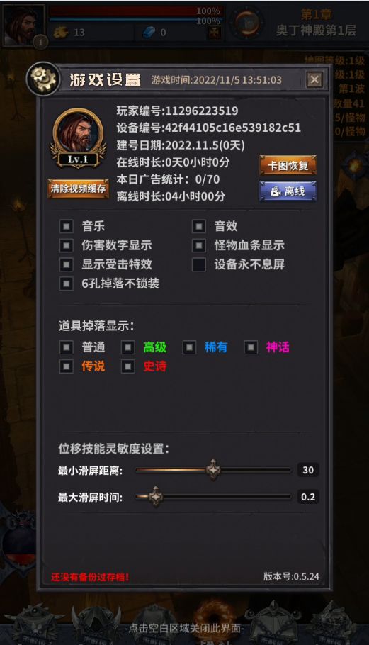 一、入坑 Hello 小伙伴们早上、中午、下午、晚上好,这里是 jsliang95。 本篇文章将从 经济、装备、活动 等场景介绍「迷途深渊」这款游戏,如何快速从 0 级到 80 级,快速入门且了解游戏基础内容。 目前本人游戏时间(当前 2022-09-12 11:41:29)和等级信息等如下: 让你觉得这个游戏爽快想入坑的视频如下: 游戏有 6 个底部入口,小伙伴们看几遍就熟悉了,简单讲讲:
