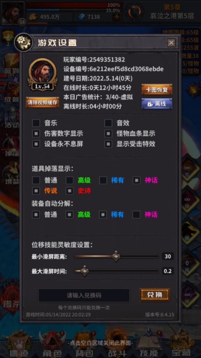 哈喽,大家好!我是莫问,新开角色存档,新人可以一起交流成长,大神多多点赞。 特此说明:我是用雷电云手机KVIP,我的理想是使用在线刷刷的方式升级和肝各种材料,当然这里我会用到自动化工具做一些简单自动化脚本。老李看不到、看不到、看不到......当然有空还算看看广告支持老李,希望迷途越做越好。 版本兑换码:GG1026 有效兑换码:SS2260、TN2112、TN2111、NEWYEAR、MPV20