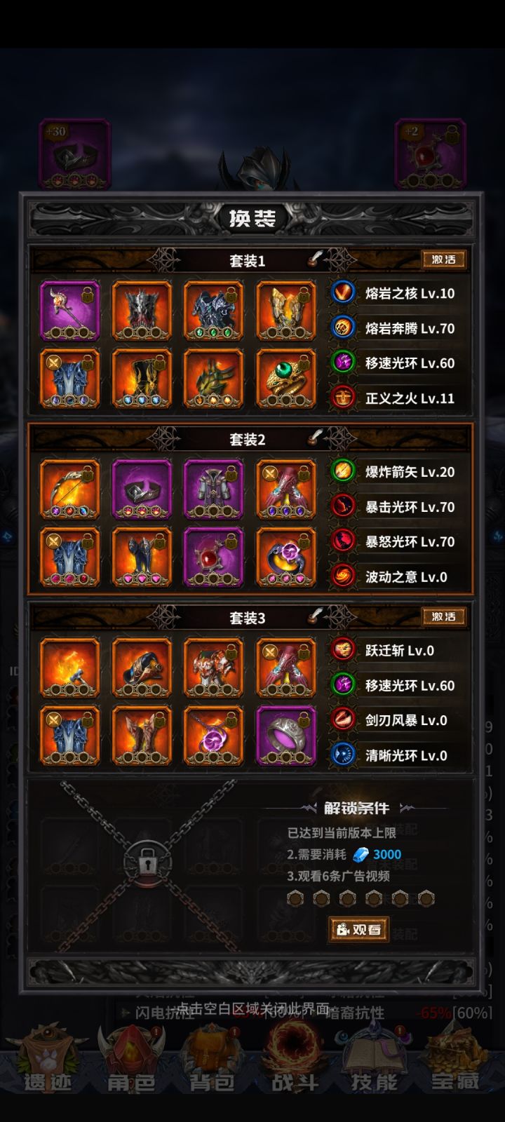 点击只看楼主方便观看后续楼层1楼(本楼)75级的常规技能装备组合选择2楼-广告宝藏相关9楼-50级前攻略以及兑换码10楼-装备刷取方案11楼-装备词条取舍16楼-115级以后的挂机记录相关(含操作视频)50楼-天赋(暂时只有爆炸箭、熔核)需知:装备上的怪量是进图属性,依据这个可以怪量套装进图然后切换成打宝/记录套,可以用于封渊,失落,刷记录等情况。由上可得,准备三套装备。第一套