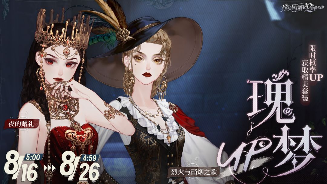 神秘的造访者离去后,她为自己戴上一顶王冠,并低声许下承诺, 此后不论她的孩子们去往哪里,都将受到她的庇护。 活动时间:8月16日5:00-8月26日4:59 限时概率UP套装:月华【夜的赠礼】、星光【烈火与硝烟之歌】 限时概率UP卡牌:月华【长日之悼】、星光【宴饮醉后】 【瑰梦UP池】轮替上新预告 关于她的故事总有很多版本,但从未有人敢去向她求证。她背负着这些秘密成为“首领”,在夹缝中守护着弱小的