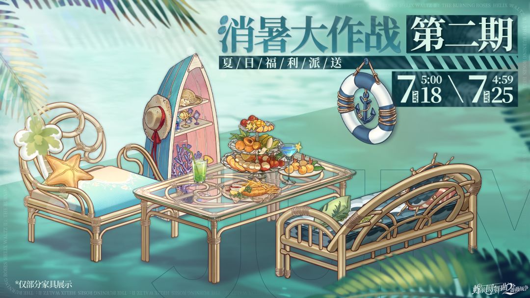 活动一:夏日赠礼 7月18日5:00-7月25日4:59,商城限时上架「夏日赠礼」系列免费礼包,内含限定家具、瑰梦券*5及多种资源道具奖励~ 活动二:夏日试炼 7月18日5:00-7月25日4:59,每日完成试炼「消暑大作战」会限时掉落「海星」。试炼于每日5:00重置。 7月24日5:00-7月25日4:59,消耗钻石可在「商人·马歇尔商盟」处购买海星,助力收集限定家具。 7月18日5:00-7月
