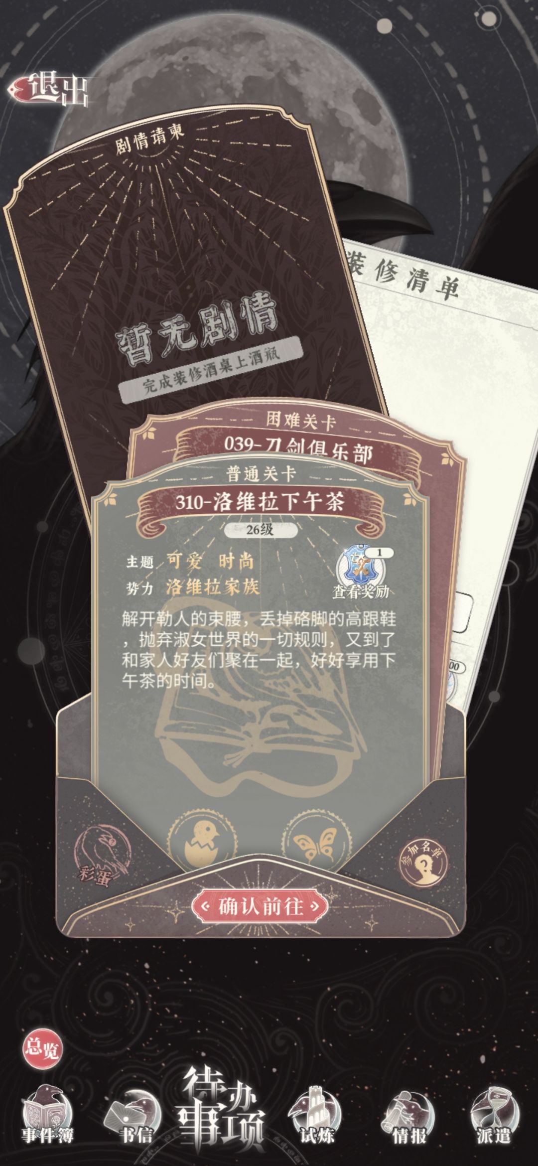 1.点击待办事项左下角“总览” 2.点击右下角🔍筛选状态,点击“彩蛋未领取”(另外如果想要寻找哪些关卡没有完美通关,可以点“通关”) 3.就可以看到哪些关卡彩蛋漏掉啦,点击对应关卡找彩蛋即可 4.地图内彩蛋寻找方法:点击有蓝色对话框聊天的小人,对话会提示地图内的物品(包括不限于钢琴,棋盘,落地灯)有彩蛋。点击对应物品解锁彩蛋获取绿色抽卡券。