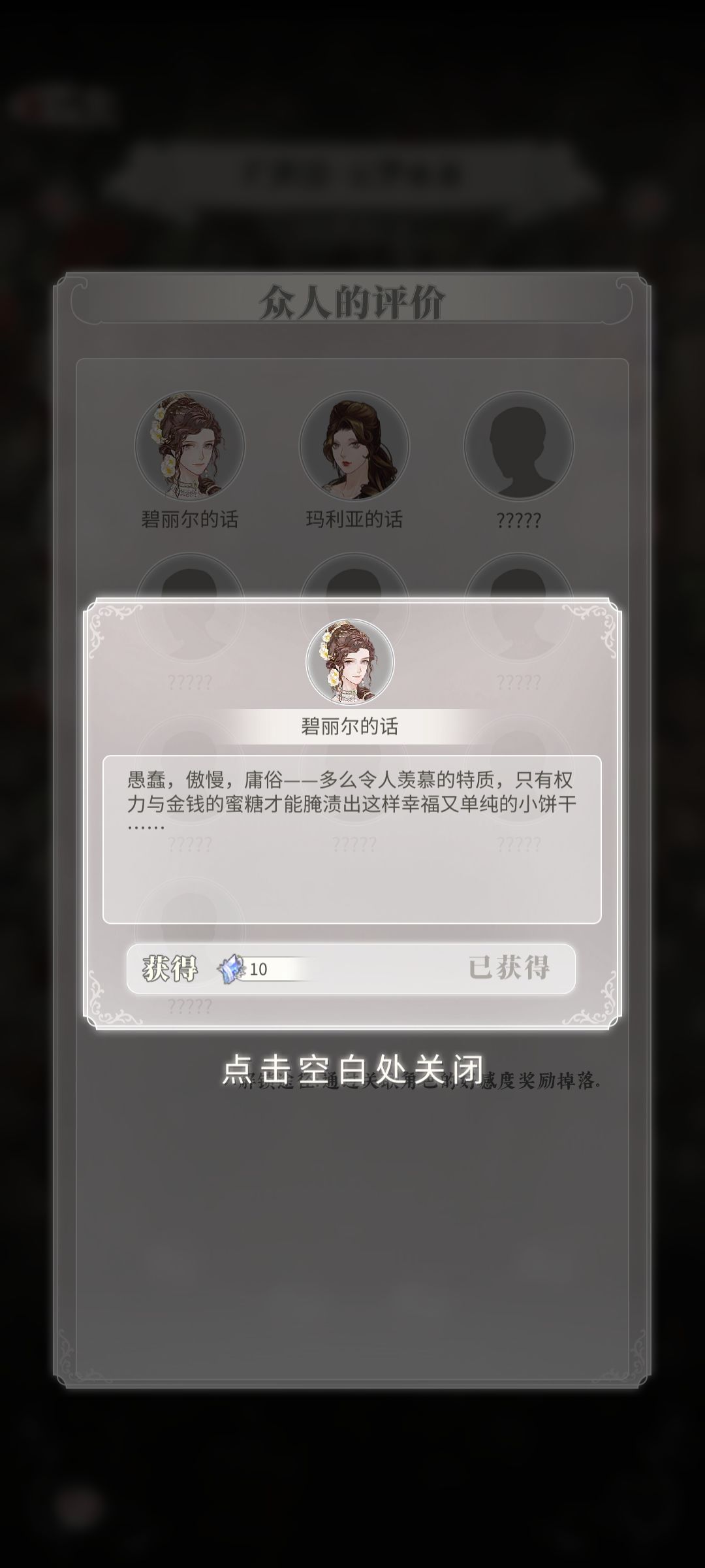 接上回!露西来介绍宾客们的礼物啦! 大小姐们在家中举办宴会, 邀约宾客,可以获得三大类的收益哦~分别是客人或家族势力的好感度、九种兴趣的点数、以及对应兴趣的情报。 露西已经能想象到富丽堂皇的庄园,还有满堂的宾客了!而大小姐一定是其中最耀眼的存在! ✿✿拓展阅读✿✿ ✿✿关注我们✿✿ 官方Q群:368869409 公众号:螺旋圆舞曲2蔷薇战争 官方微博:螺旋圆舞曲2蔷薇战争 B站:螺旋圆舞曲2蔷薇战