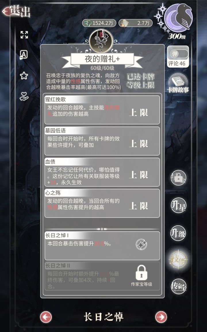 这是一个零氪很难活的游戏,前期卡关卡到你奔溃。屁点衣服没有,还要每天上线,为了养卡过关刷日常任务。中期死命刷关,主线一共有906个普通关+99个困难关(外加主线剧情关)试炼也就是爬塔,红女王60关白女王60关乌鸦女士700关(外加每日3,每半个月30)不算外加关,一共有1825关。如果你有幸刷完,那么恭喜你来到后期。后期这个游戏什么都没有噢~因为游戏已经半停服了呢!带着你几十亿的金币和