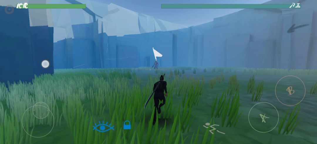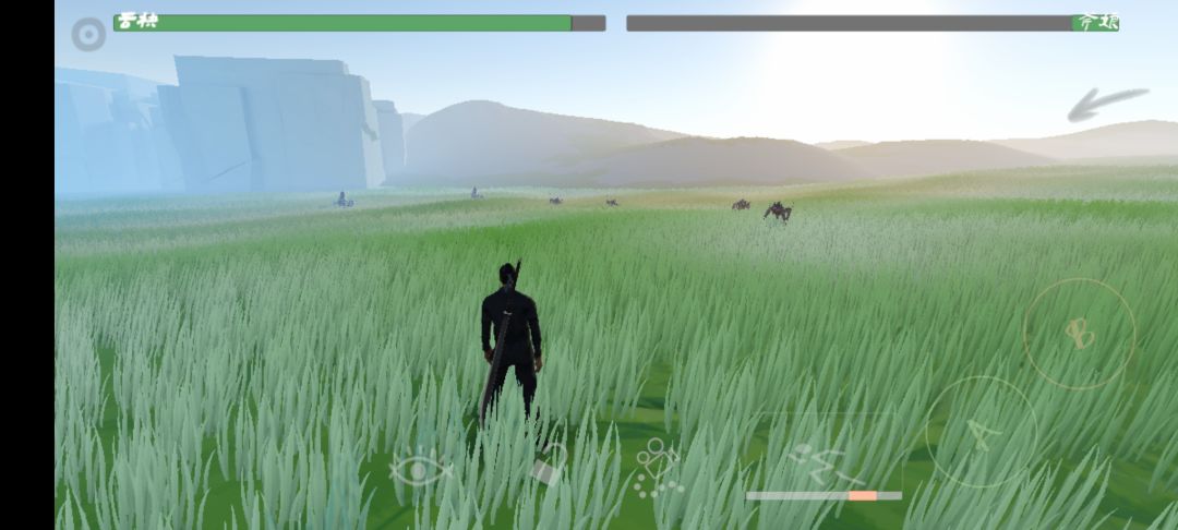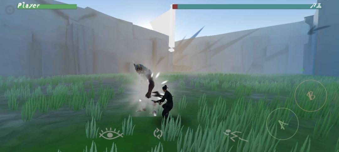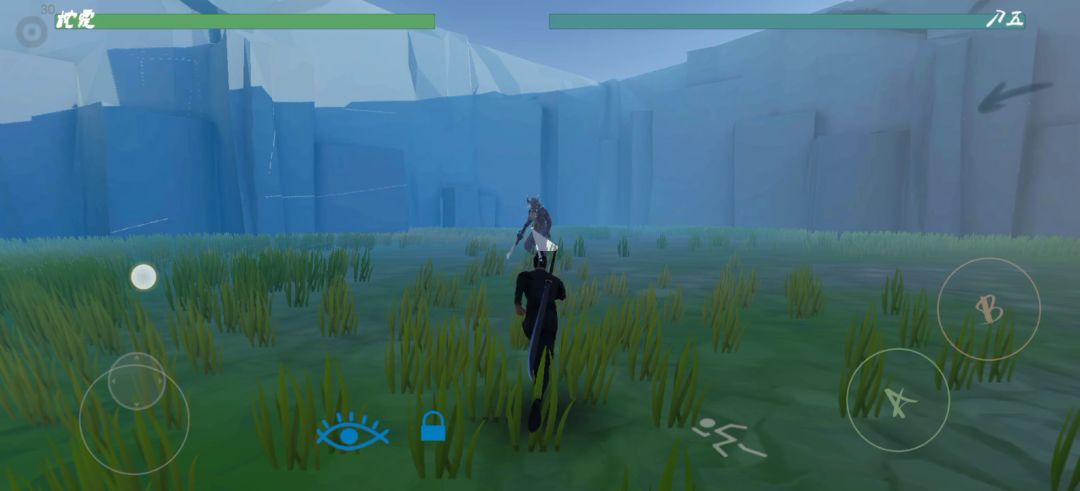 移动/攻击/闪避 等不多说了,说些其它不同的操作。 眼睛图标 有3个功能: 1,无战斗时提供导航功能,如果迷路了就点一下,会指向前进的方向。 2,战斗时会注视其中一个敌兵,当敌兵都在背后时会很有用。 3,在锁定目标时,更换不同的目标。Boss战时会始终锁定Boss不能更换。 锁定目标 使摄像机始终面向敌人,清完兵后会自动解锁。 平行相机 摄像机图标可以切换为平行式相机,比较适合晕3D的同学。在锁定