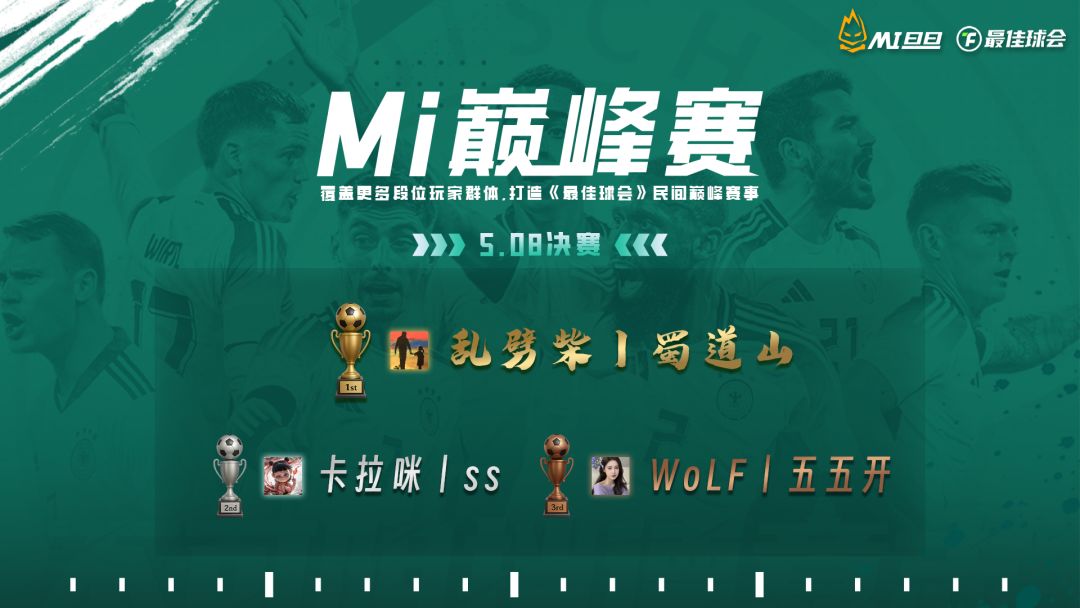 第三期#mi巅峰赛 已结束,排名如下: 第一名:乱劈柴丨蜀道山 第二名:卡拉咪丨ss 第三名:WoLF丨五五开 第四期比赛今日开打,本期比赛人数进行了大量扩充,看看这一期会不会又有黑马夺冠? #最佳球会