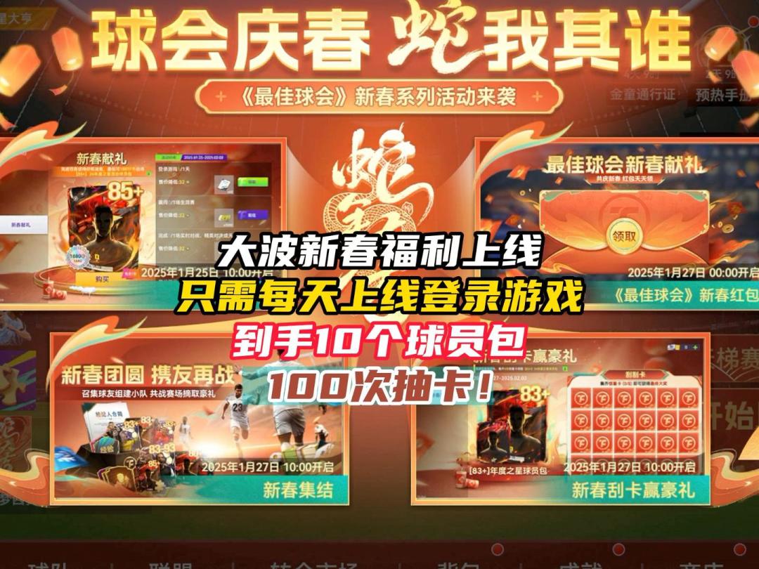 兄弟们,最佳球会新春福利来袭!总共白嫖10个球员包,一万张合同,直接就是一百抽!