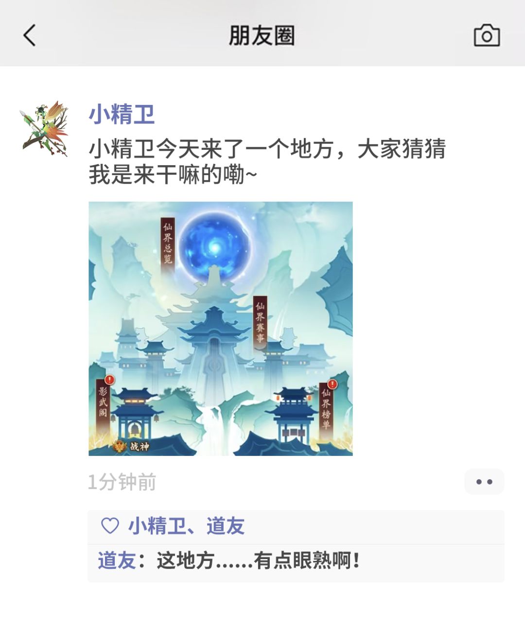 十年一梦神仙道,韶华不负少年行! 道友们大家好哇!你的小精卫突然出现!在《神仙道》的世界里,道友们不光要面对来自妖魔的考验,更要面对来自四面八方不同道友的挑战。仙界每到一定的时间就会举办盛大的赛事,供道友们切磋,证明自己的实力!小精卫也要凑凑热闹! 您收到一条来自道友的消息! 道友:小精卫小精卫!你去仙界干什么的?莫非又可以神仙打架了吗?! 小精卫:对呀!仙道会和双龙会可是《神仙道》的