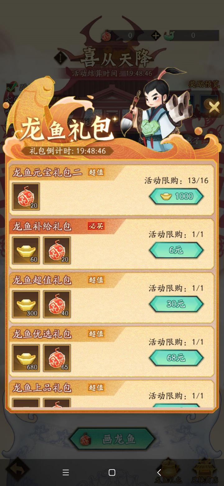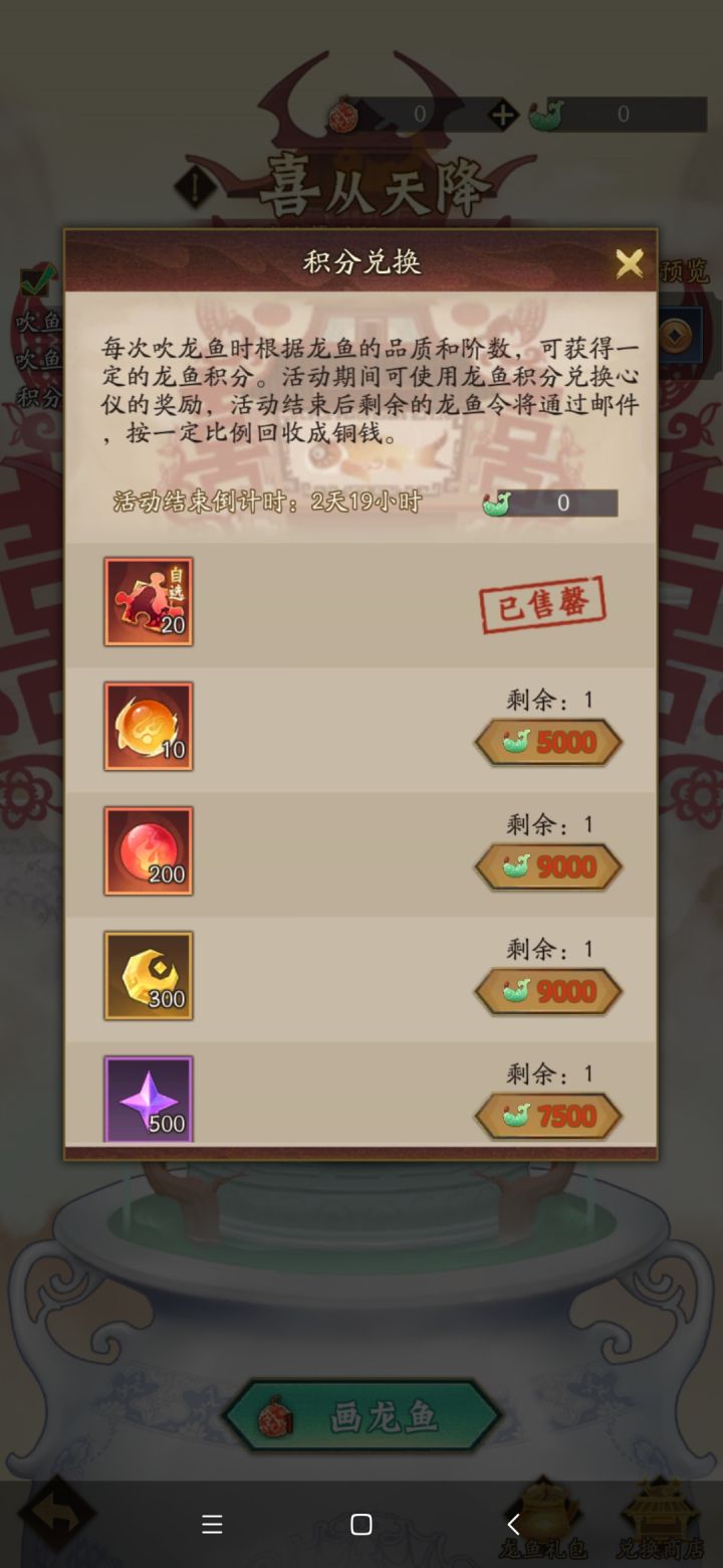 今天才发现,买吹鱼的元宝=吹鱼吹出来的分。也就是说5000元宝=5000吹鱼分。比如:5000元宝=10珠子另外再送你一点紫气,铜币,经验这三样中的其中一样。吹的越多越亏,建议买免费的和800元宝的就行了,剩下的差一点就补一点。能不买就不买。