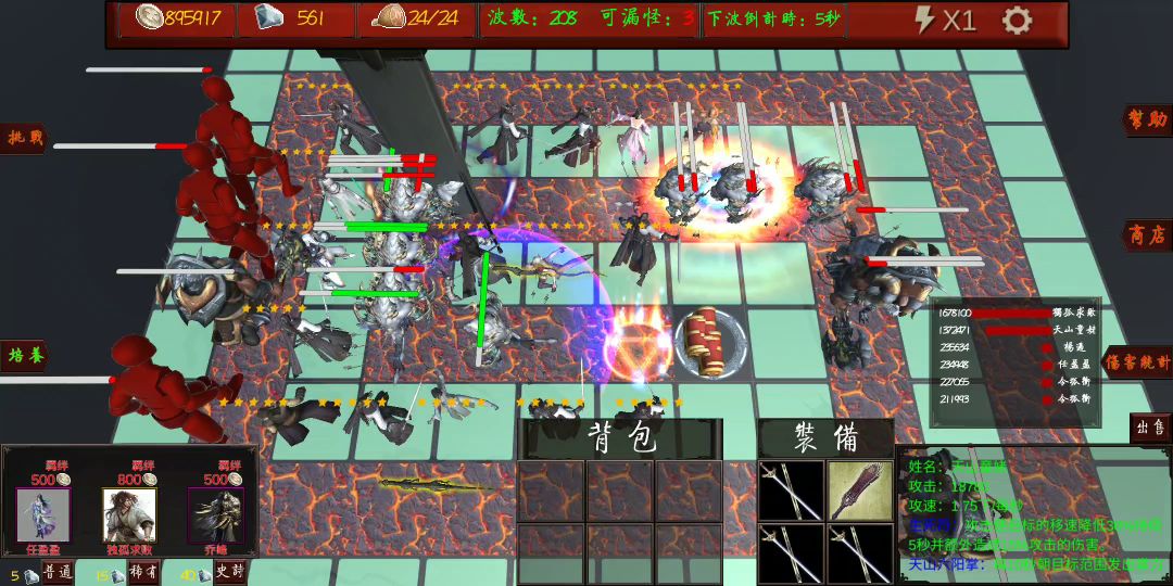 任盈盈每波开始给10攻击和0.001攻速,但是你算算,攻速成长跟没有似的,1000波时候的攻速加成才相当于10点攻击,铁废物。