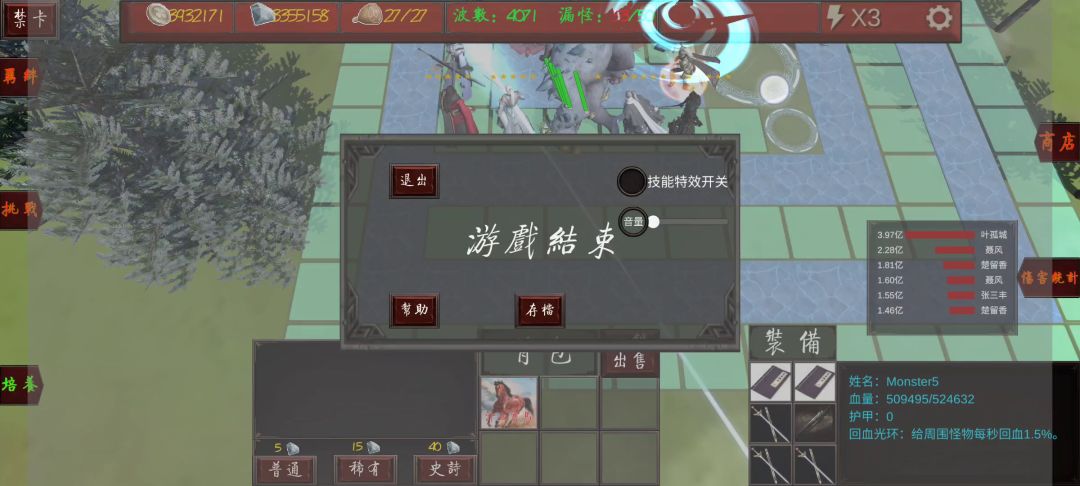 无尽后期几百万血上千护甲可选不多