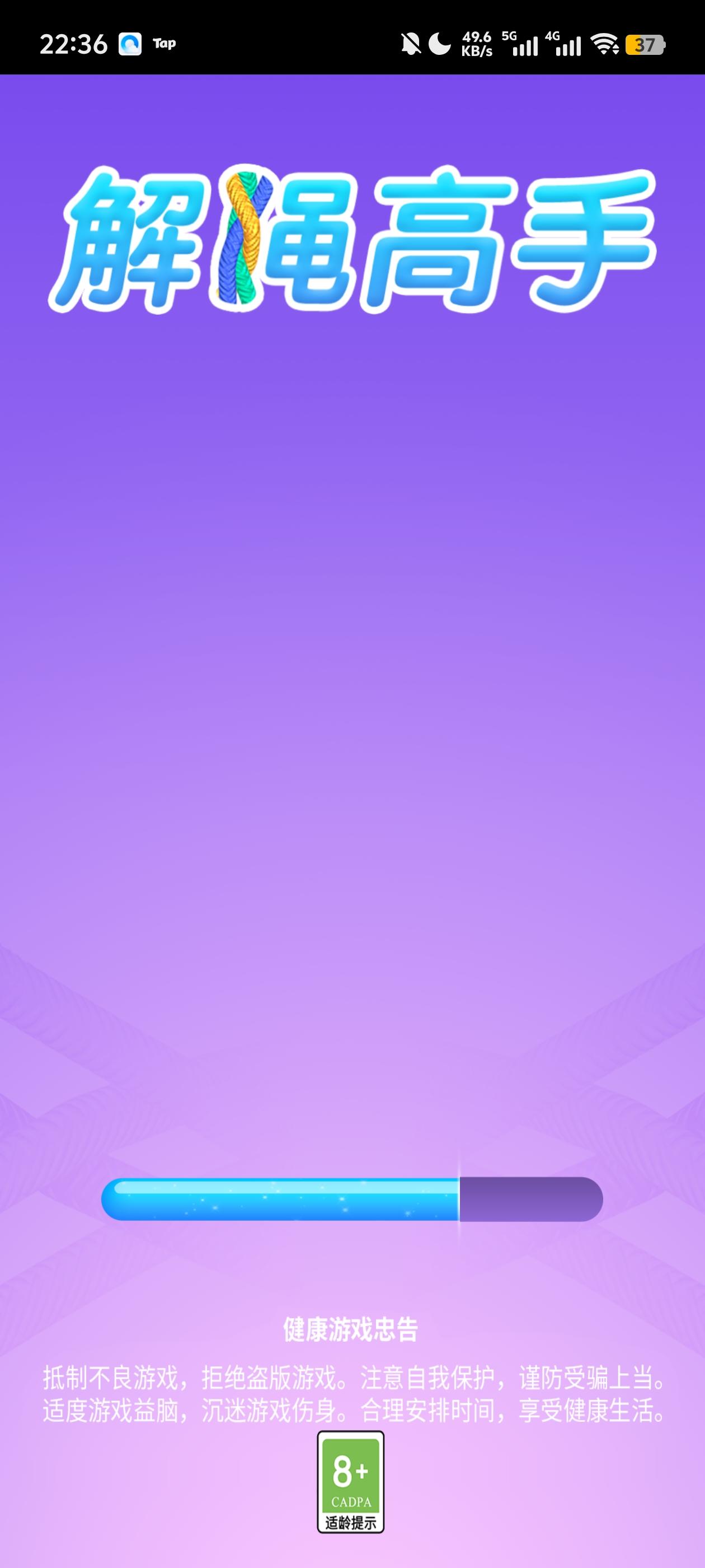 就是刷广告能看见的解绳子游戏,玩了几十关就有点心浮气躁不想玩了,本来想去论坛看看一共多少关,结果有人玩到四千关还没结束,立马失去兴趣了。