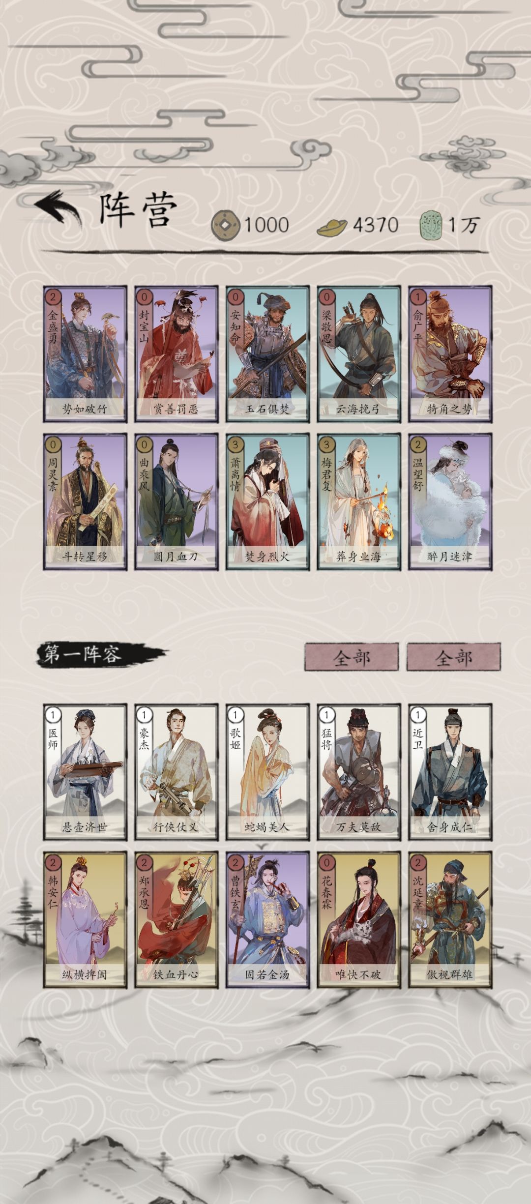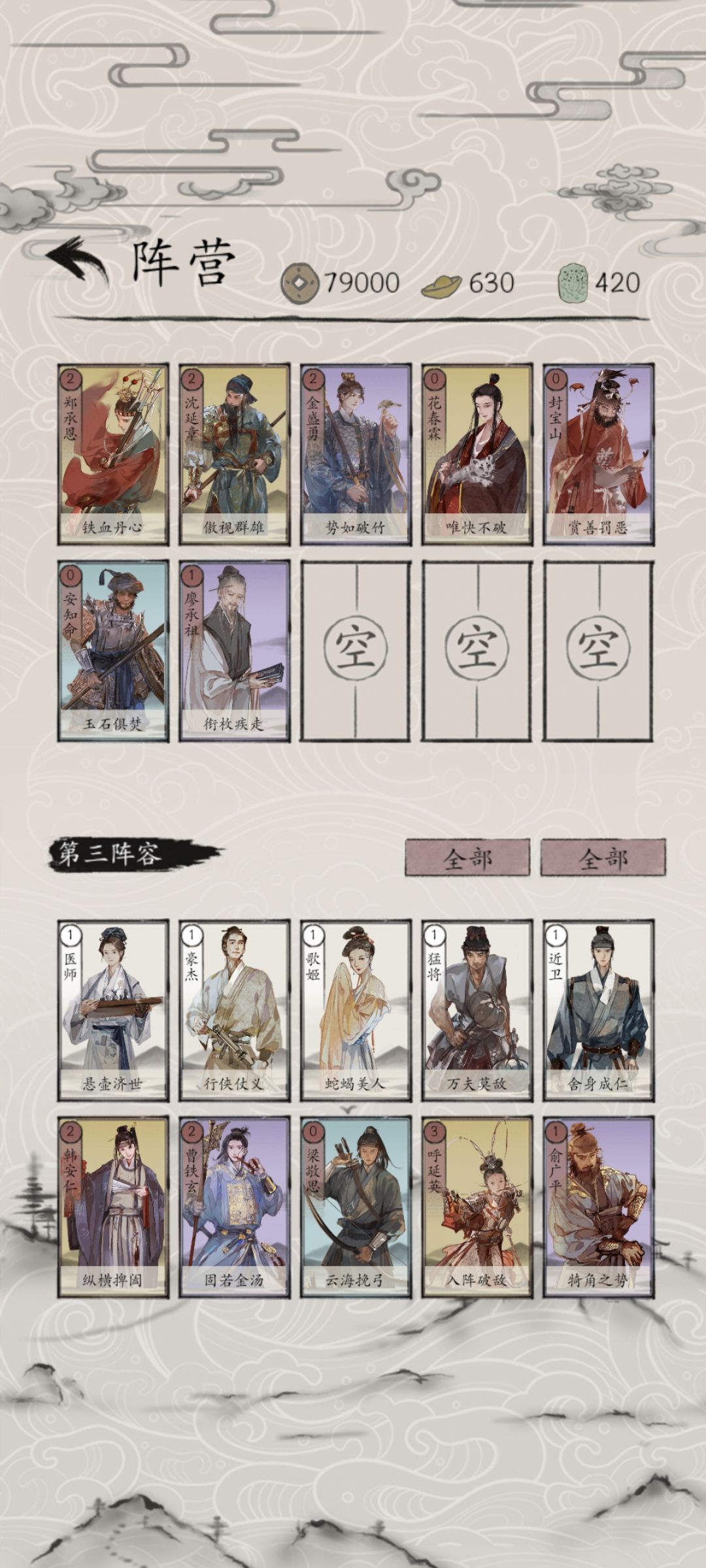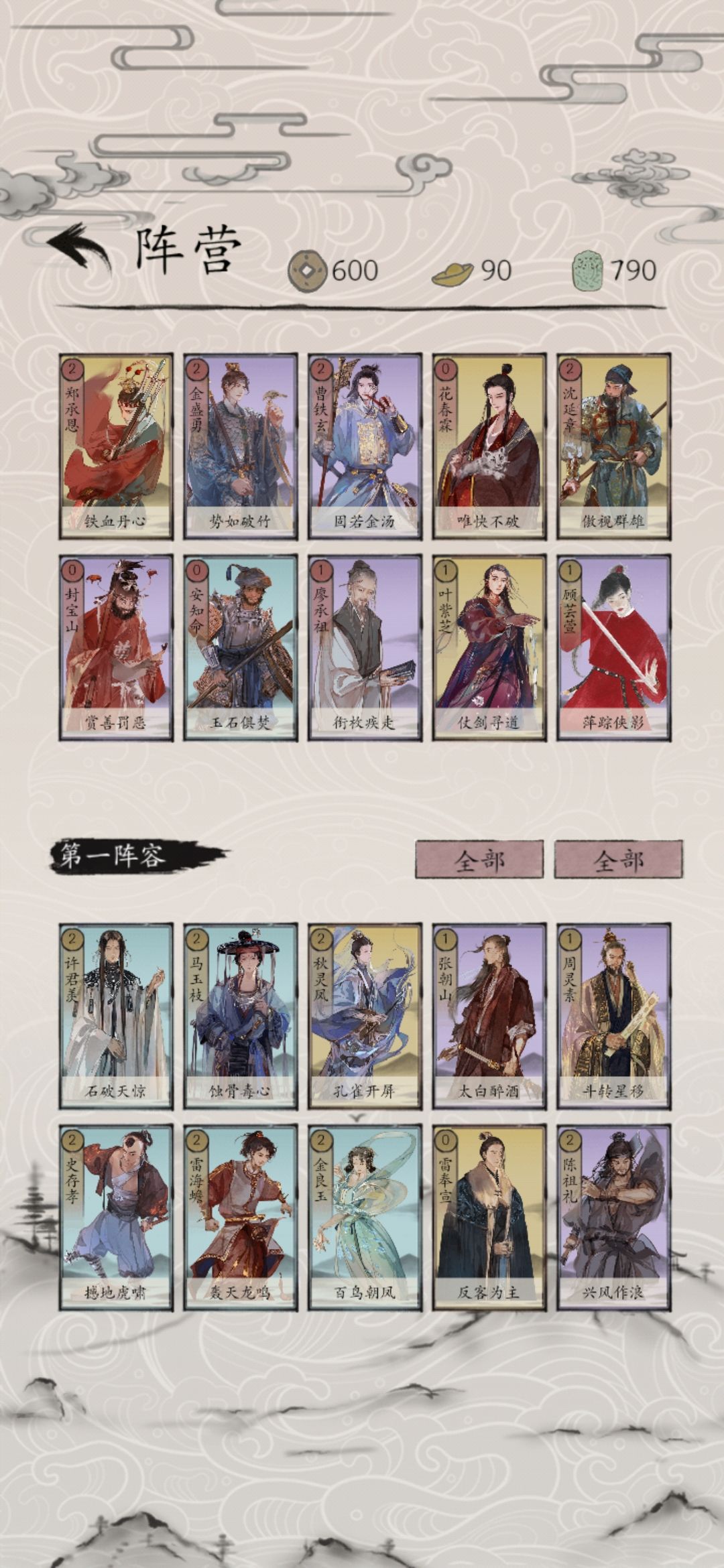 自己搭的1套建文快攻… 这套好的就是开局不给对手反击,让我们依靠建文高爆发快速解决战斗。 俞广平和封宝山两张牌刷出来基本前两个回合对手一张都出不了,创造进攻时间,廖承祖避免前期卡牌。 用(前期郑承恩,后面换沈延章,没牌用曹铁玄)理想状态下最多四张就可以解决,正好和开局快速解决的战斗思路契合。(曹铁玄也可以换金盛勇 花春霖和安知命主要就是兜底,对面有特别恶心的牌也可以挡一挡,一个保下线的作用。(花春