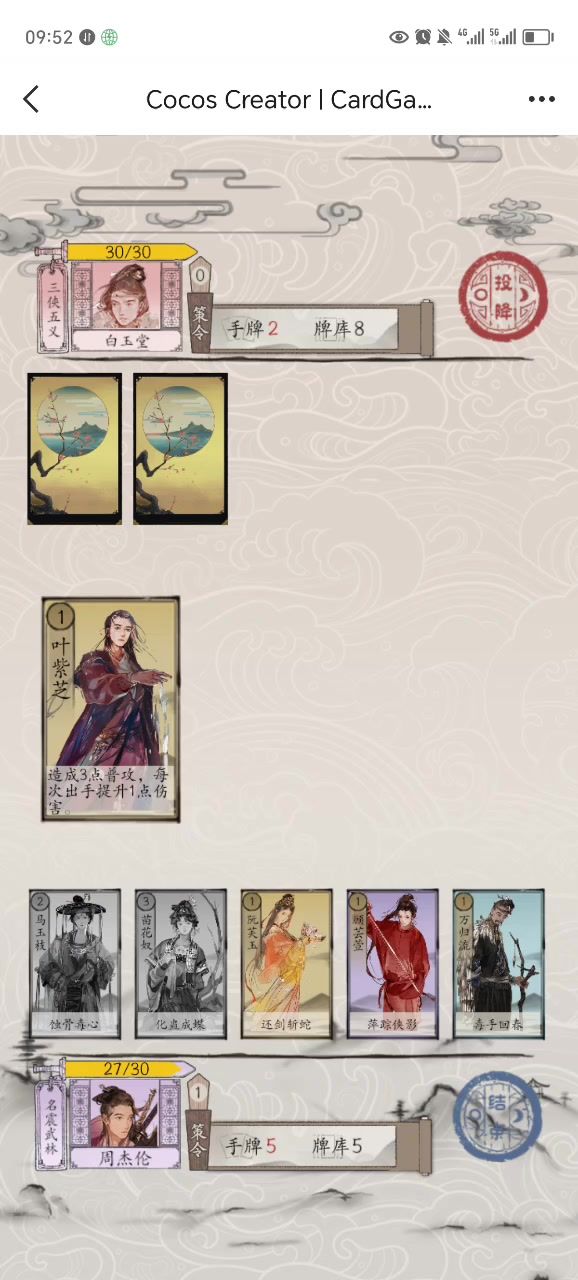 在包晓生英雄传中有五大阵营:江湖、建安、藩王、永乐、武林。 其中江湖牌是通用牌可以和其他四大阵容相互搭配。而五张白板都属于江湖,介绍一下每张白板的作用,每张白板都可以重复上阵下面详细说一下。 一:猛将,1费造成俩点伤害。 重复上阵叠加消耗和伤害: 说人话就是上一张打俩点血消耗一费,上俩张打四点血消耗二费,但也会站你卡组中的俩个位置。一套卡组只能搭配十张牌。 二:豪杰,1费获得2点真气,没玩过测试的