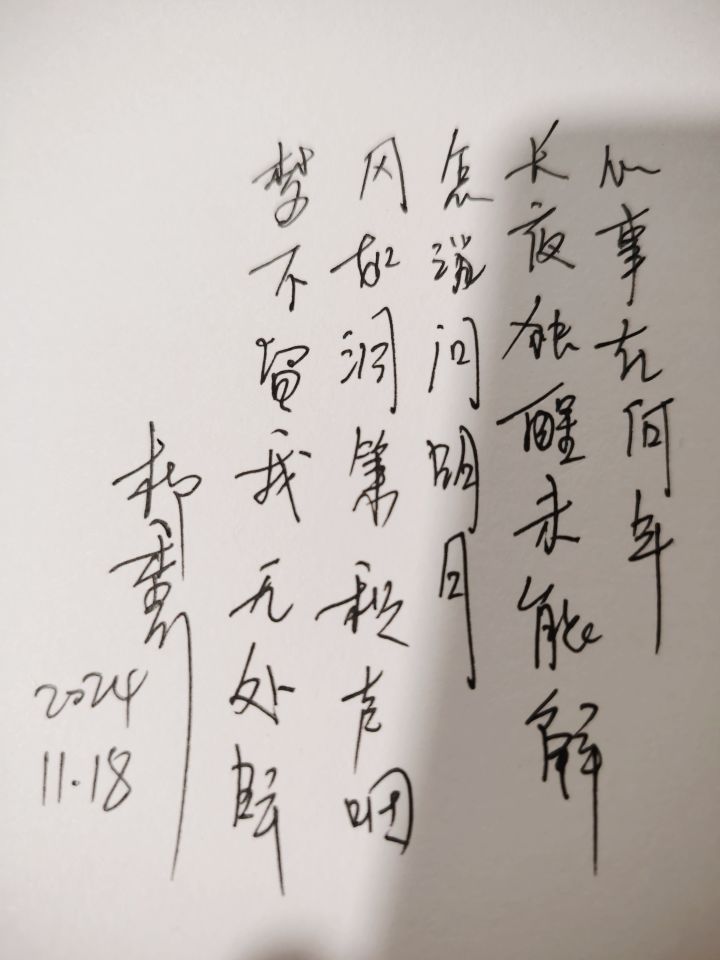 心事在何年,长夜独醒未能解,怎消问明月。风如洞箫秋声咽,梦不留我无处眠。2024.11.18