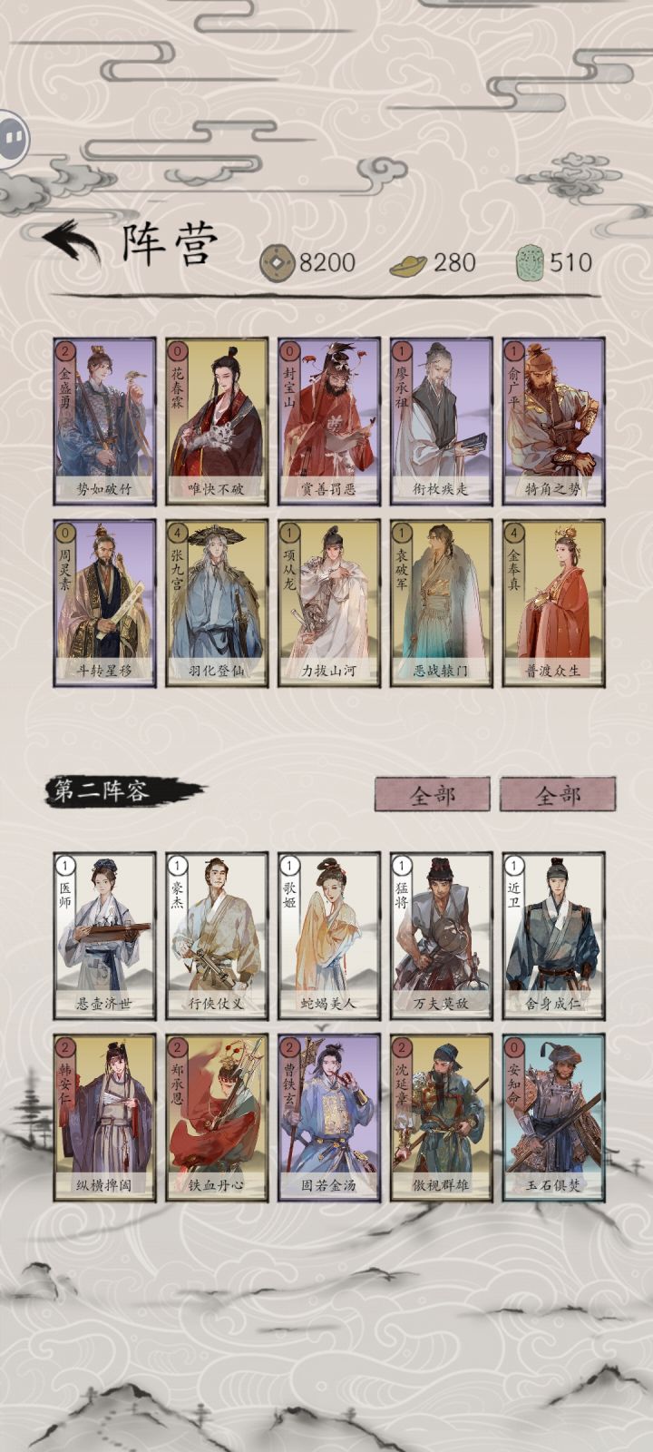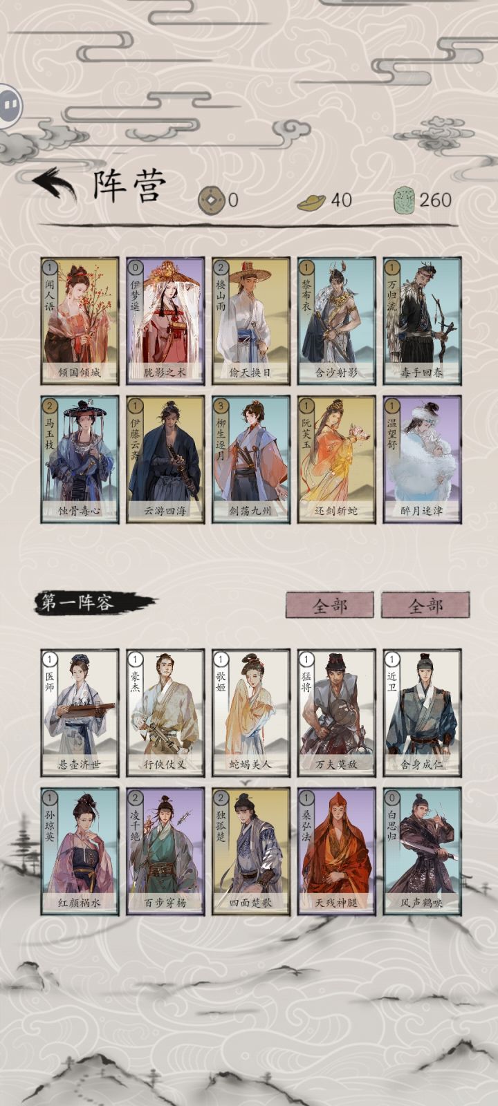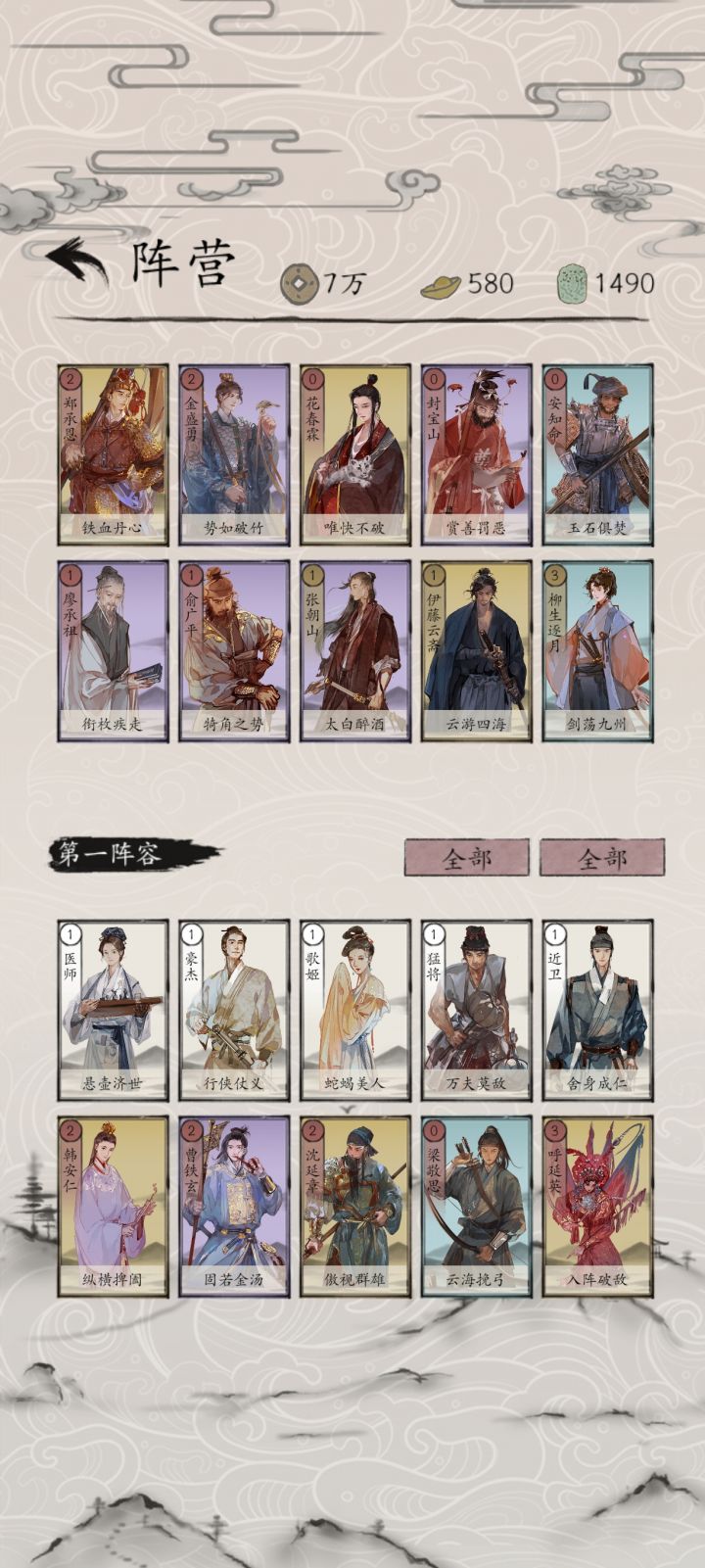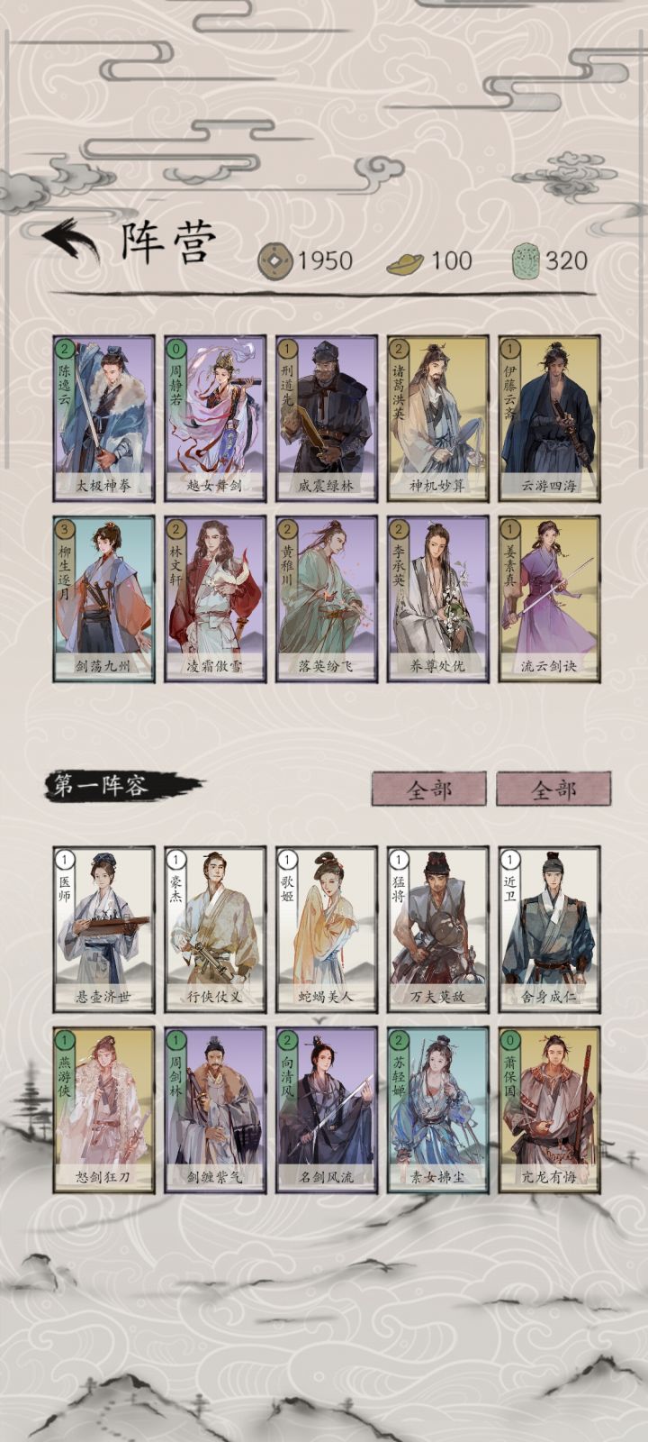 开局记得领取叶紫芝(抽卡)、顾芸萱(签到)、秋灵凤、张朝山、雷奉宣(副本),史存孝、雷海蟾、金良玉、颜寿民、叶玄真、柳怜玉。可以组成初始江湖和复制卡组;初始江湖可以先去关卡通关包晓生英雄传本传,通关副本后,可将元宝和铜钱全部用来抽卡,收集推荐卡组角色。注意缺失金卡可以考虑声望获取外,紫卡和蓝卡非必要则尽量等抽卡获取。江湖三件套能够应对PVE和PVP,初始江湖、星宿江湖和假象江湖在天梯都比较好用,