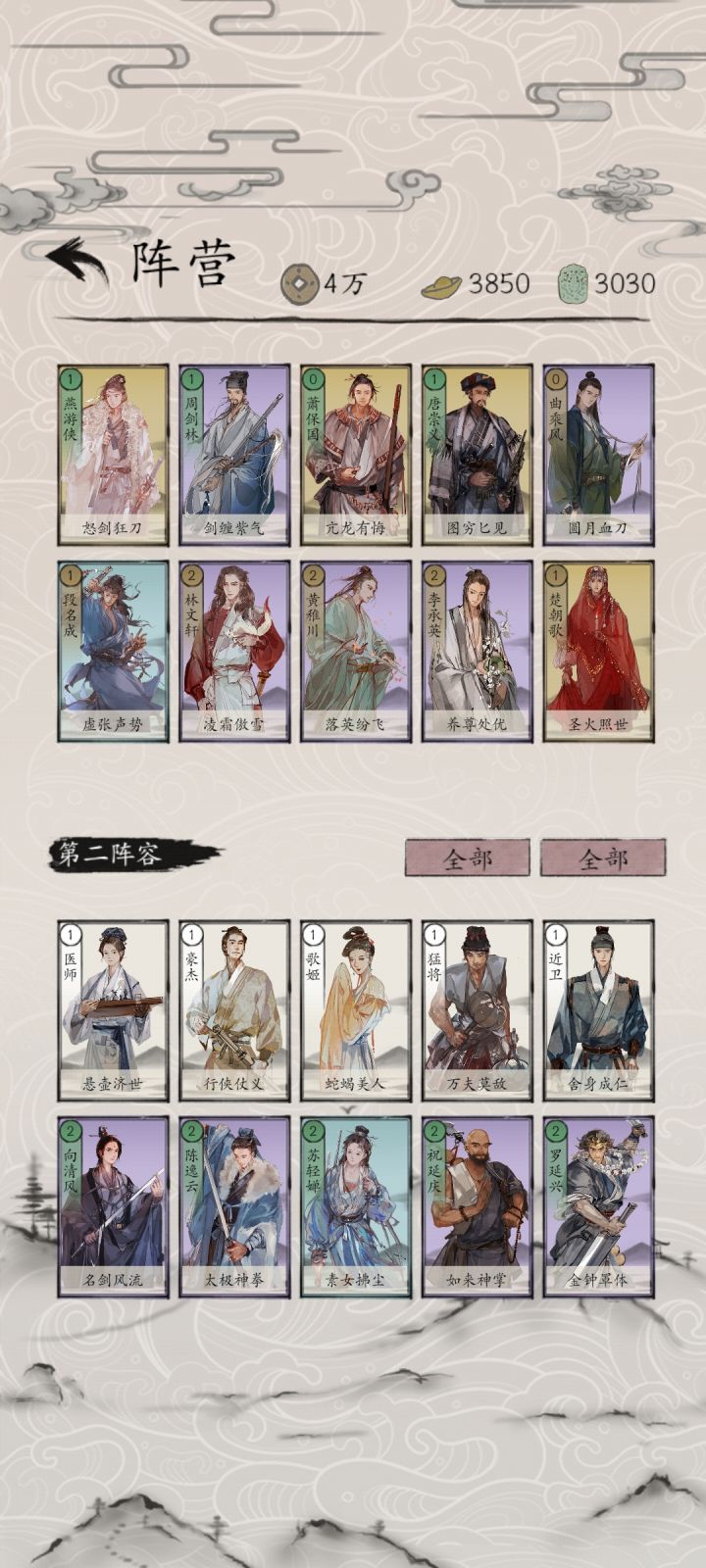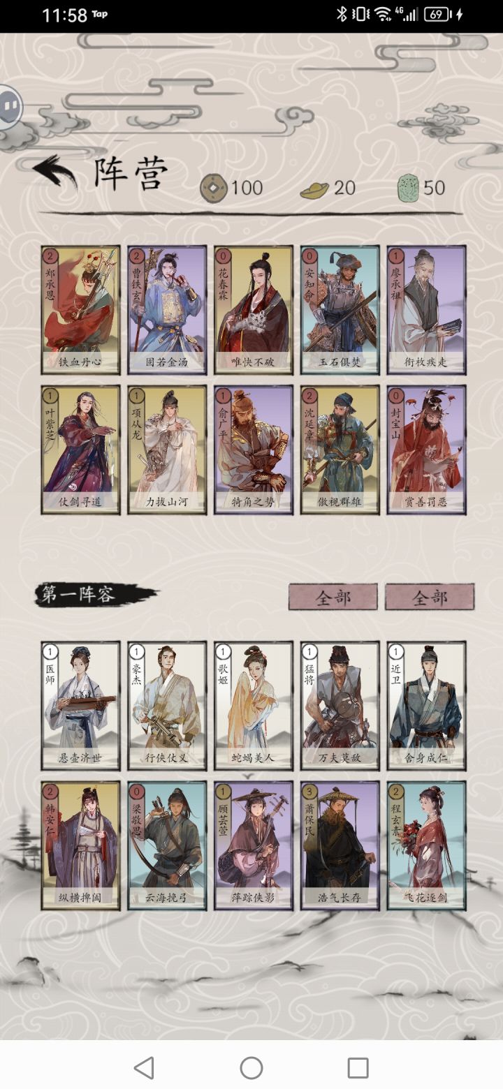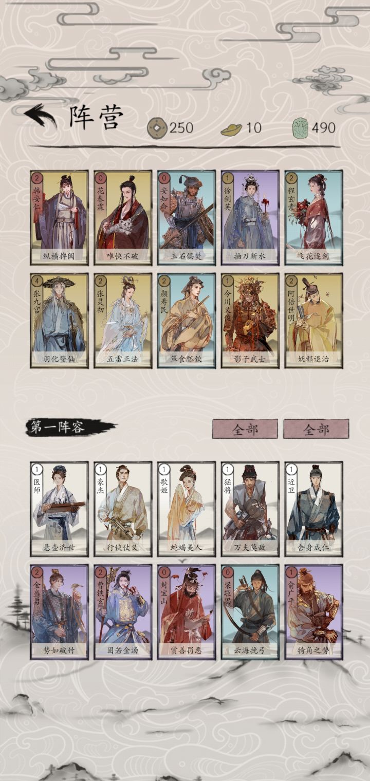 开局记得领取叶紫芝(抽卡)、顾芸萱(签到)、秋灵凤、张朝山、雷奉宣(副本),史存孝、雷海蟾、金良玉、颜寿民、叶玄真、柳怜玉。可以组成初始江湖和复制卡组;初始江湖可以先去关卡通关包晓生英雄传本传,通关副本后,可将元宝和铜钱全部用来抽卡,收集推荐卡组角色。注意缺失金卡可以考虑声望获取外,紫卡和蓝卡非必要则尽量等抽卡获取。江湖三件套能够应对PVE和PVP,初始江湖、星宿江湖和假象江湖在天梯都比较好用,