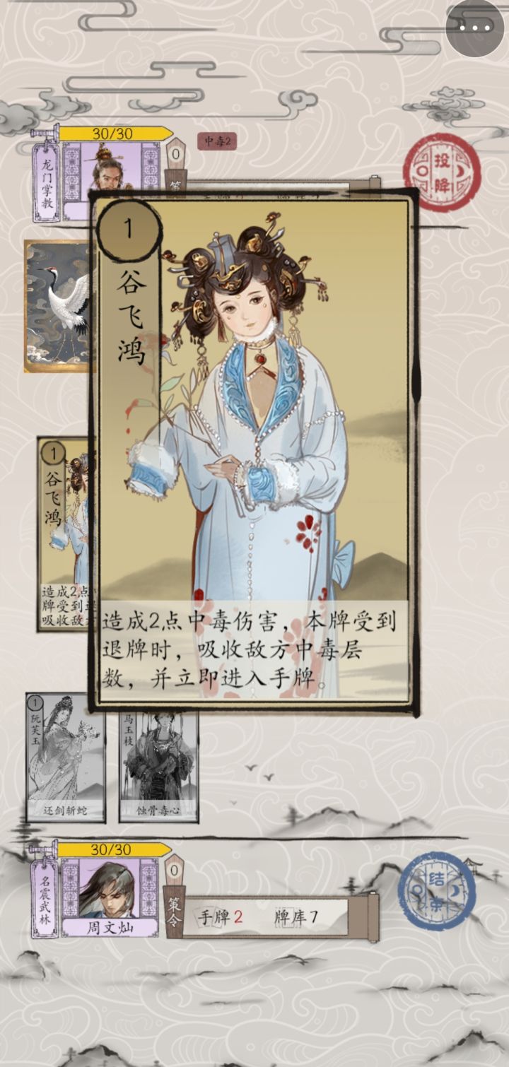 最新效果为:1费,造成2点中毒伤害,本牌受到退牌时,可吸收敌方中毒层数,提升本牌属性,并立即进入手牌。新的谷飞鸿可以看准时机,让中毒能够避免被驱散,从而避免资敌。同时积蓄更多的中毒,做到蓄力斩杀。