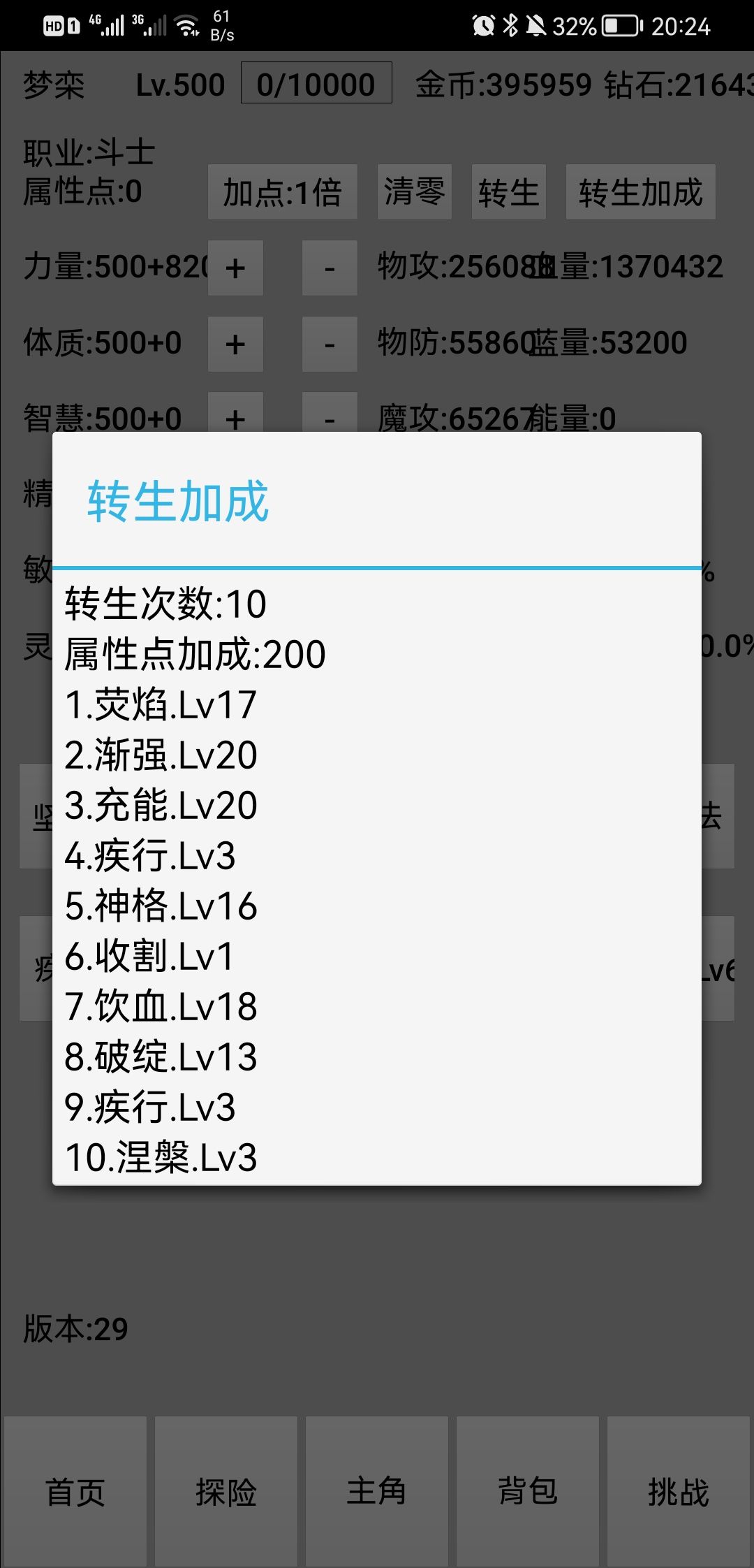 新手攻略,进入游戏打怪几下嘤嘤拳一个小怪,一个小怪一级经验左右吧升级还是挺快的,至于为什么废话这么多因为我攻略字数少有点看不过去 进入游戏经过几秒升级到2 退出游戏几天等待游戏发酵 领取经验砖石 抽符文 装备 加点潜行者 探险抽技能 血祭 坚山 箭雨 你已经是个成熟的天选之子了去杀几个魔神去庆祝一下,魔神之证只有一个有用我带了四个打不过一千的魔神才发现,不说了我先去转生了