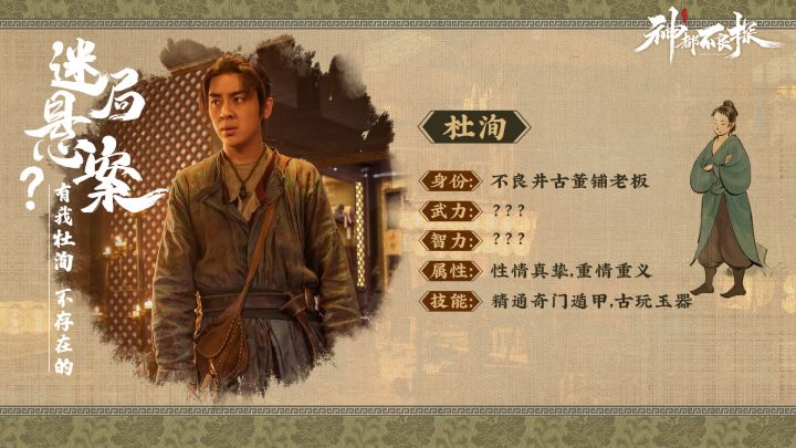 《神都不良探》爆料了这么久以来,不良探们最关心的莫过于咱们的主角到底是何方神圣,今天探宝就为大家带来不良井中杜洵的人物介绍,而他就是我们在游戏中所扮演的角色!咱们的主角杜洵从小在不良井中长大,依靠自身精通各种古玩玉器、奇门遁甲的能力,做起了古董生意,还开了一家不大不小的古董铺。但不良井作为洛阳之下的废弃之墓,满是犯人、贼子、流民和强盗,以及见不得光的黑市交易和地下买卖。杜洵耳濡目染了种种的人心