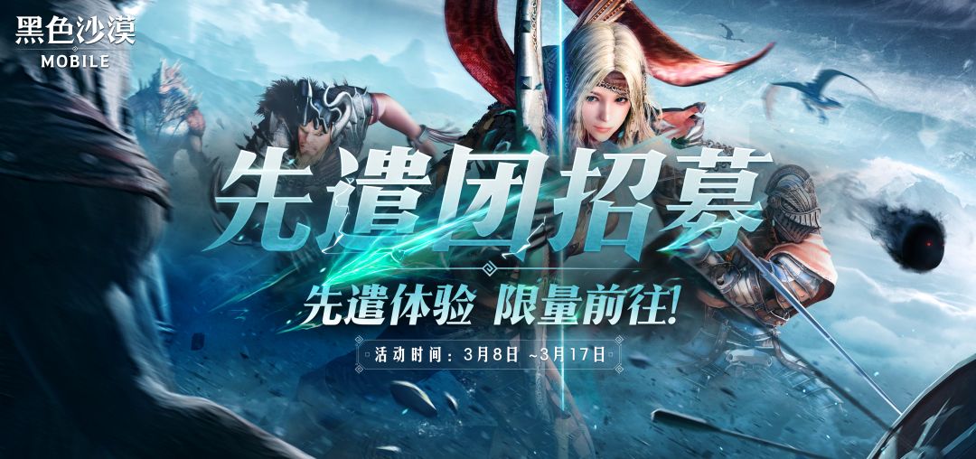 嘿冒险家们~我是安琪。冒险家们期盼已久的冒险即将正式开启,本次的先遣团依旧需要进行限量征召,想要共赴奇幻新世界的冒险家们,赶紧来填写问卷领取限量征召资格吧~ 招募链接: 【游戏介绍】 《黑色沙漠》是由韩国厂商Pearlabyss研发,根据同名人气网游改编的异域魔幻MMORPG手游。 ※打破一条龙式的常规玩法,领略多层次MMO新体验; ※奇幻异域风情超大世界,畅快探索发掘无尽乐趣; ※一人成军,攻城