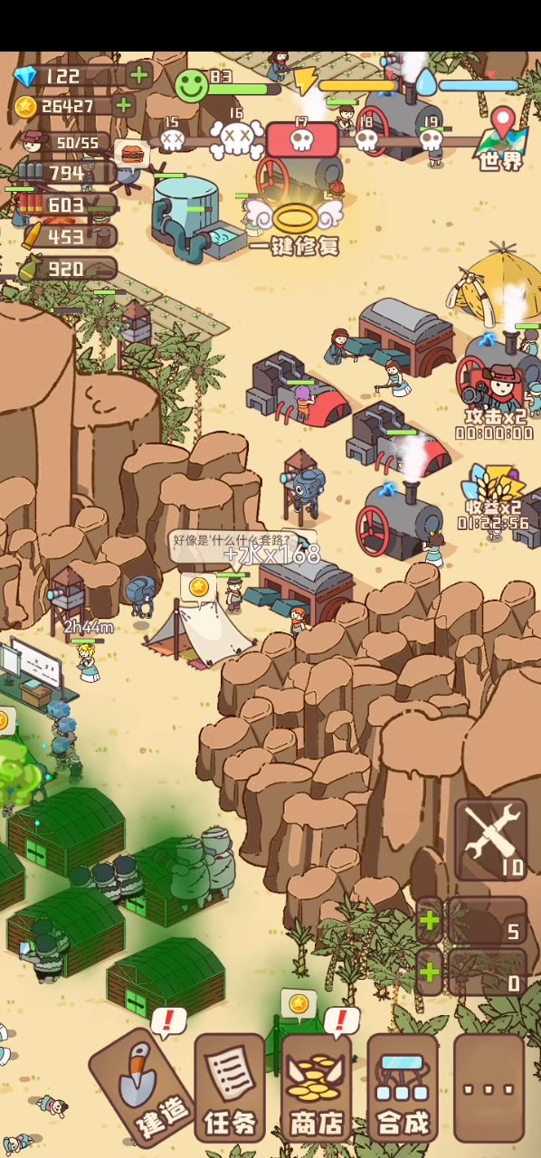 时间不够发育?丧尸大军来了怎么办?让丧尸大军快要攻破大厅了就剩一丝血时!连忙点上面一键恢复看视频!看完视频回来一看,只有大厅被攻破了!其他设施与人都恢复好了!可以照常运作!这样就不会有丧尸大军主动攻击你了!上面关卡时间也没了!这样你就可以慢慢发育了!大厅被攻破了,就是不能放置设施与收集金币与钻石了!你要是想放置设施或者收集金币与大厅钻石了,点一下大厅修复就可以了!没一会就会提示丧尸大军来了!继续让丧尸大军快要攻破大厅了,看完视频卡时间,再慢慢发育!