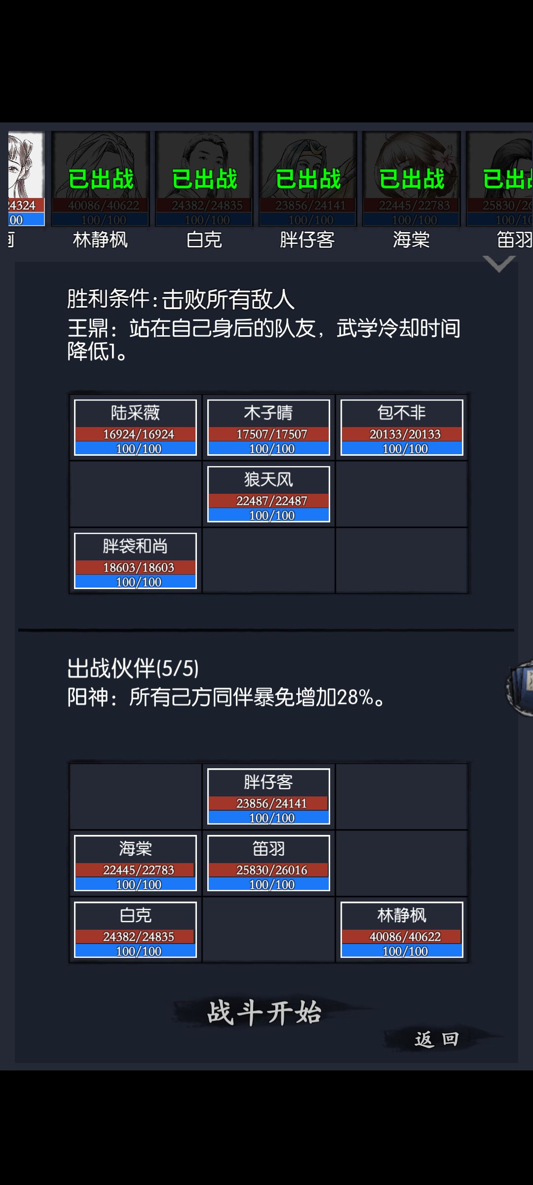 之前各种靠纯凹,这次要点都差不多,张三千里剑必须攻击,千里剑要凹双攻击,能爆伤就爆伤,不是丐帮的就用啥都差不多,爆伤比我高的可以考虑太虚拳,秒不掉千里剑的话就都一样;或者宗师秘籍不像我这么缺的,就用缚龙诀,争取三回合爆掉。 下附小林各种面板图,主角领十九才过