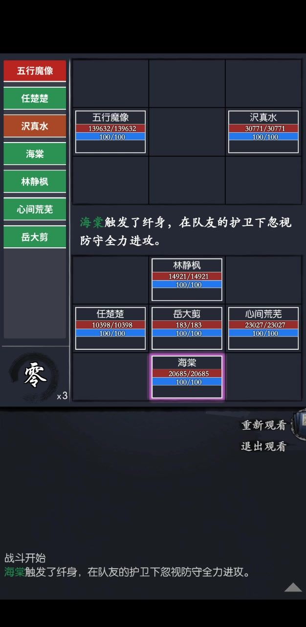 记得把小林放当中打一排,并且保证旁边没有队友触发残体,到日之前都这么过没啥问题 小林是主力得保护好直接让主角扛住,奶奶几口就过了 到月之前基本都是这个配置,然后到月 小林往左放,一人单挑把左边的干掉,记住右边那个是打最远那个人,换个能抗的抗住就没问题,小林打死左边,会加入右边的战斗 但血魔最后会触发一个类似狂暴的buff伤害极高,但只要最后不把小林打死就没问题 小林有无漏因此右边扛不住,就可以多凹