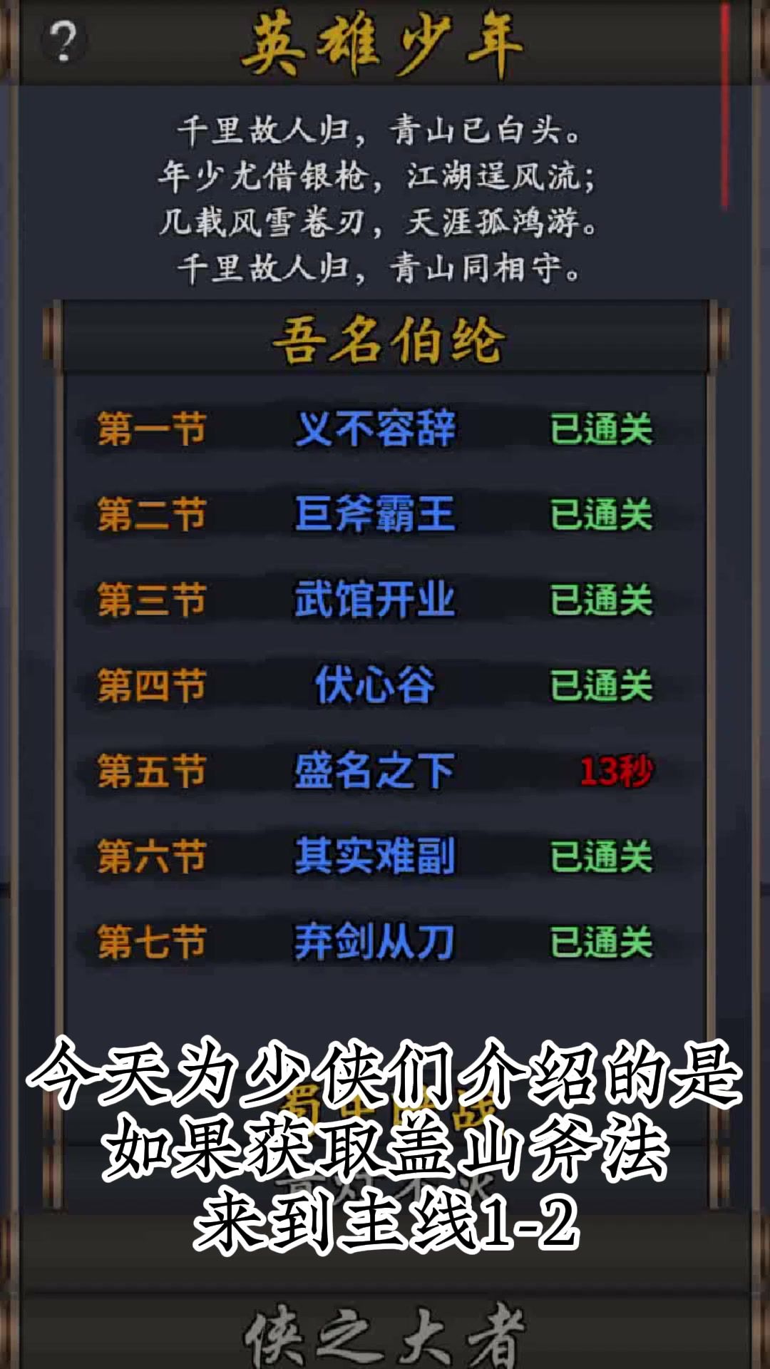 隐藏武学盖山斧以及升级秘籍获取方法#今天游戏圈发生了啥 #你的江湖 #你的江湖攻略 #单机游戏 #发现好游戏 #国风 #武侠 #浅评一下 #游戏日常