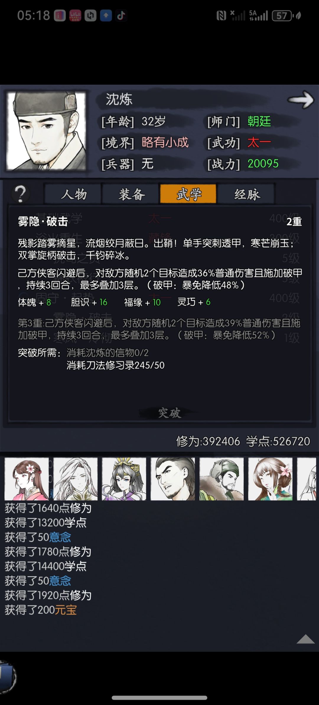 #沈炼攻略 丁修拉了三脉一内(2-1和2-2都点不满),沈练准备2-1点满,2-2就一级不拉了,1-1和1-2只开了心魔(等丁修返场吧)。微氪想要活动侠客还是难受