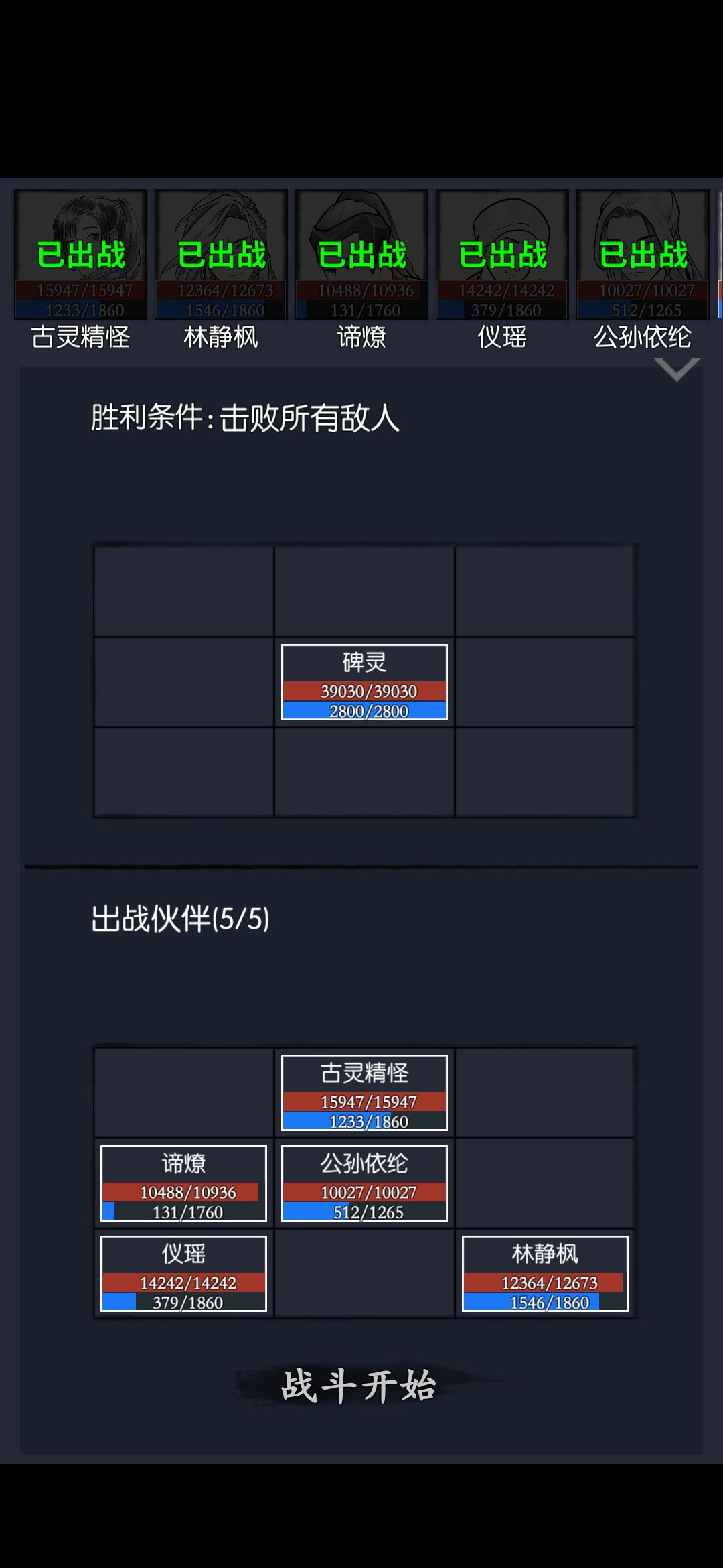 天涯海阁怪物特性,龟息回合开始回合结束不受伤害 就是不让你用持续伤害把日月过了 前面几关还是一样 日:长老杀人会回血,霄风依旧带的降龙掌 先击杀前排,保证小林第二发缺剑打中长老 前排依旧需要一定坦度 下面己开始也是老样子,优先击杀人多的一列 这关其实没啥太大讲究,只要前排扛得住,伤害够就行,怪物没啥特殊机制 这里打到最后其实小林已经阵亡,但是前面人的伤害足以打死bs 主角这里是古墓当中有一次回血不