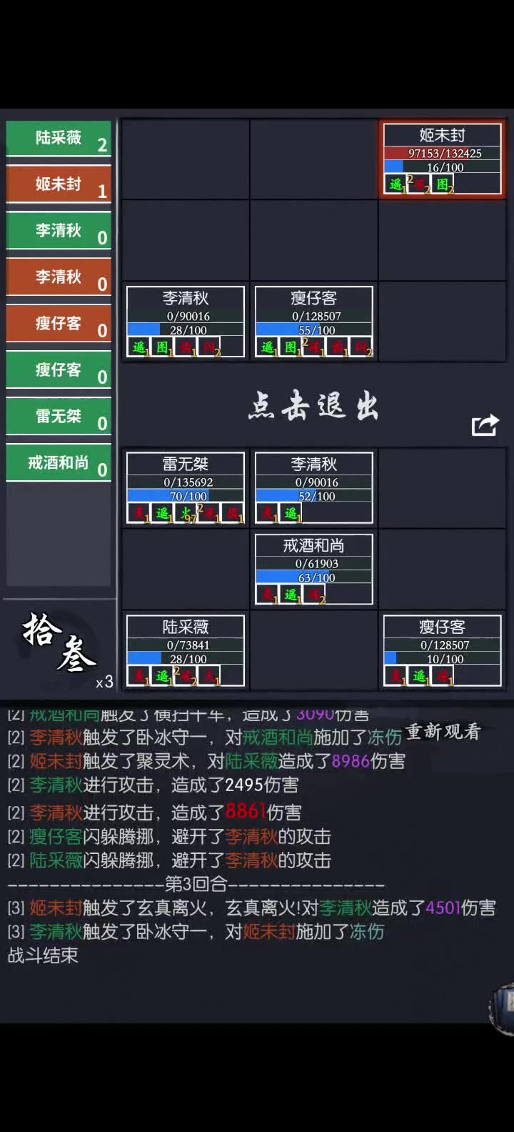 怪身上不仅有一堆回合数长还能快速叠加的超级dbuff , 自己这边的易伤还处理不了.....唯一能清buff的只有楚楚的被动,但回合结束清一只怪也是没啥用。侠客属性差就算了,给的技能更是没眼看,没续航输出低,打到后面只能拖回合数卖血,而怪又是越打越强......想打满30波就要关关凹,随机性强还没容错,根本出不了攻略