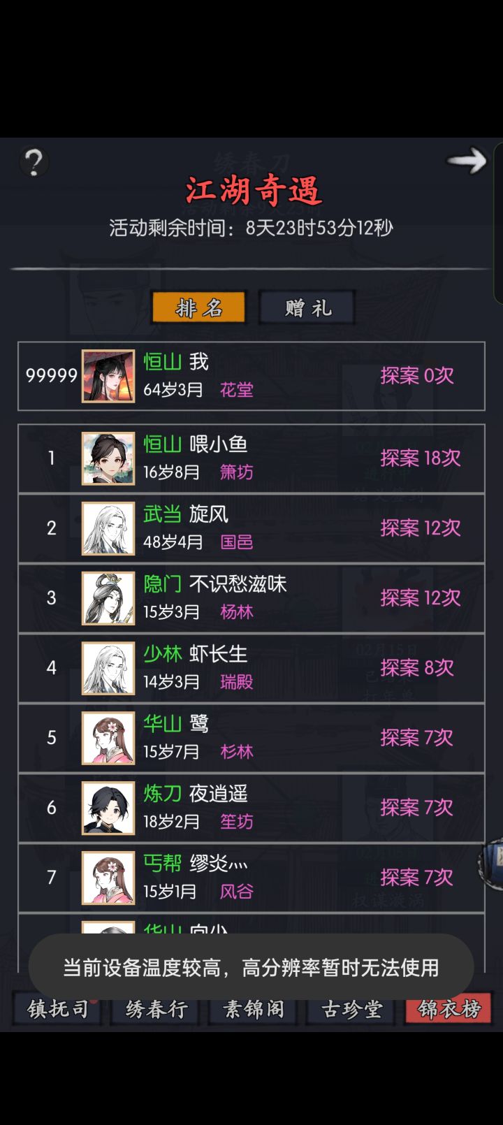 又快到云颠了,有感吐槽两句;由于老龄玩家数量太少,游戏内年龄分组已经让人恶心反胃。现状后期玩家数量少是策划忽略了甜甜圈法则,让这款套着武侠皮的赌博游戏变得呆板滞瑟。现在的种种设置是赤裸裸的劝离中层玩家。策划应该赶紧干的事:1)补脑2)脑子补不了就赶紧问问AI怎么优化游戏内年龄分组3)校对所有人物技能说明的谬误和不严谨地方,论坛里那么多吐槽官方是从来不看吗?