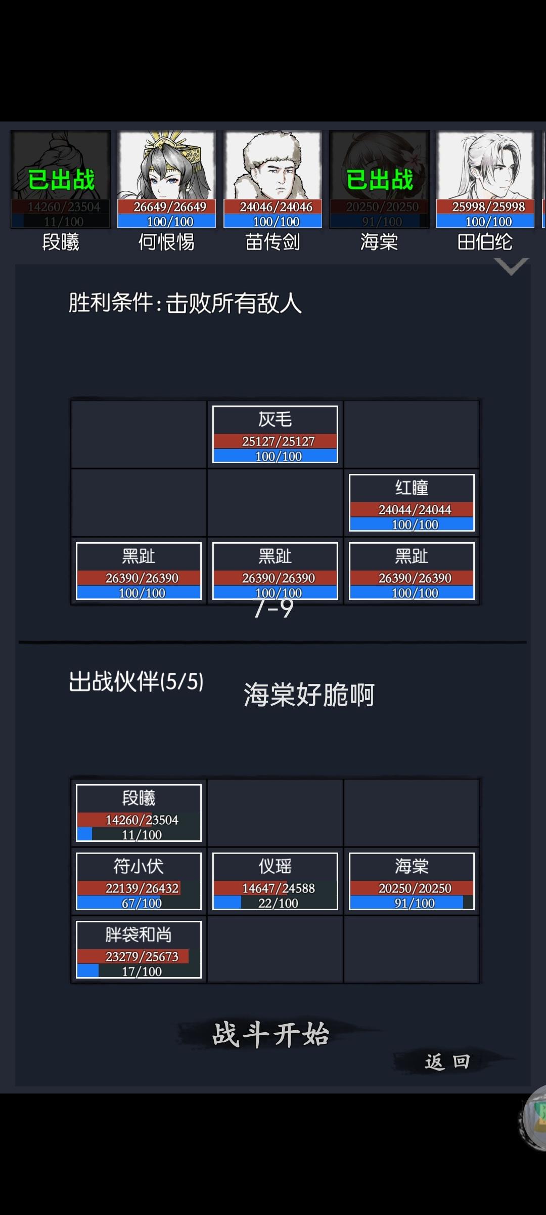 周一开始玩,目前14岁8个月,领队8级,现在卡关卡在2-7观音泪。感觉把装备能升的都升了还是打不了,不知道问题出在哪。在论坛在别人都能刷出红装、战力破万了😓求助各位大神前辈队伍能怎么搭配,后续努力的方向