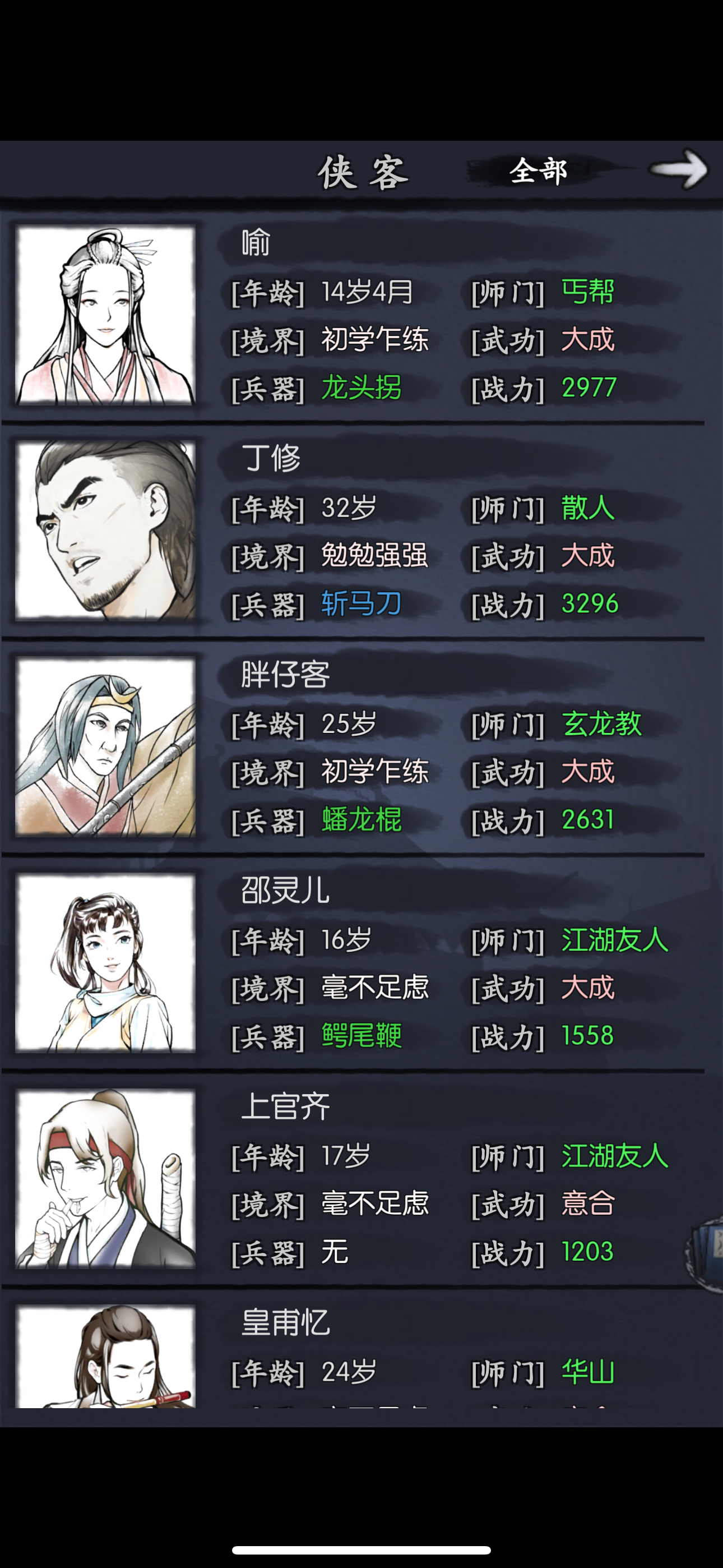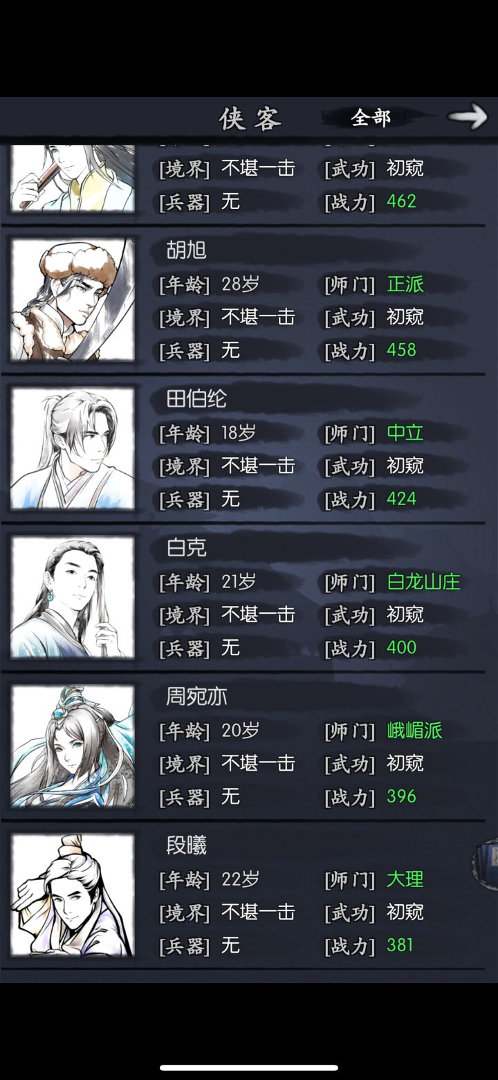 .....华山天赋,武林世家,除非你后面玩金刀可选猎人华山,金乌刀最强门派和天赋,没有之一,是最强。这个攻略适合月卡微氪,不太适合白嫖。适合肝党 开局必须的侠客胖仔,林,或者木子更好前期。带两个奶妈仪加海棠。如果选林必须,必须开1-2,1-1技能是必须哈,前排左右各一个林和胖仔,主角用华山技能,什么猴棍各种不用,猴棍能用上是很久的事了,大概是通天几十层挂红十几二十天后的事。主角站位跟林一起,秒一