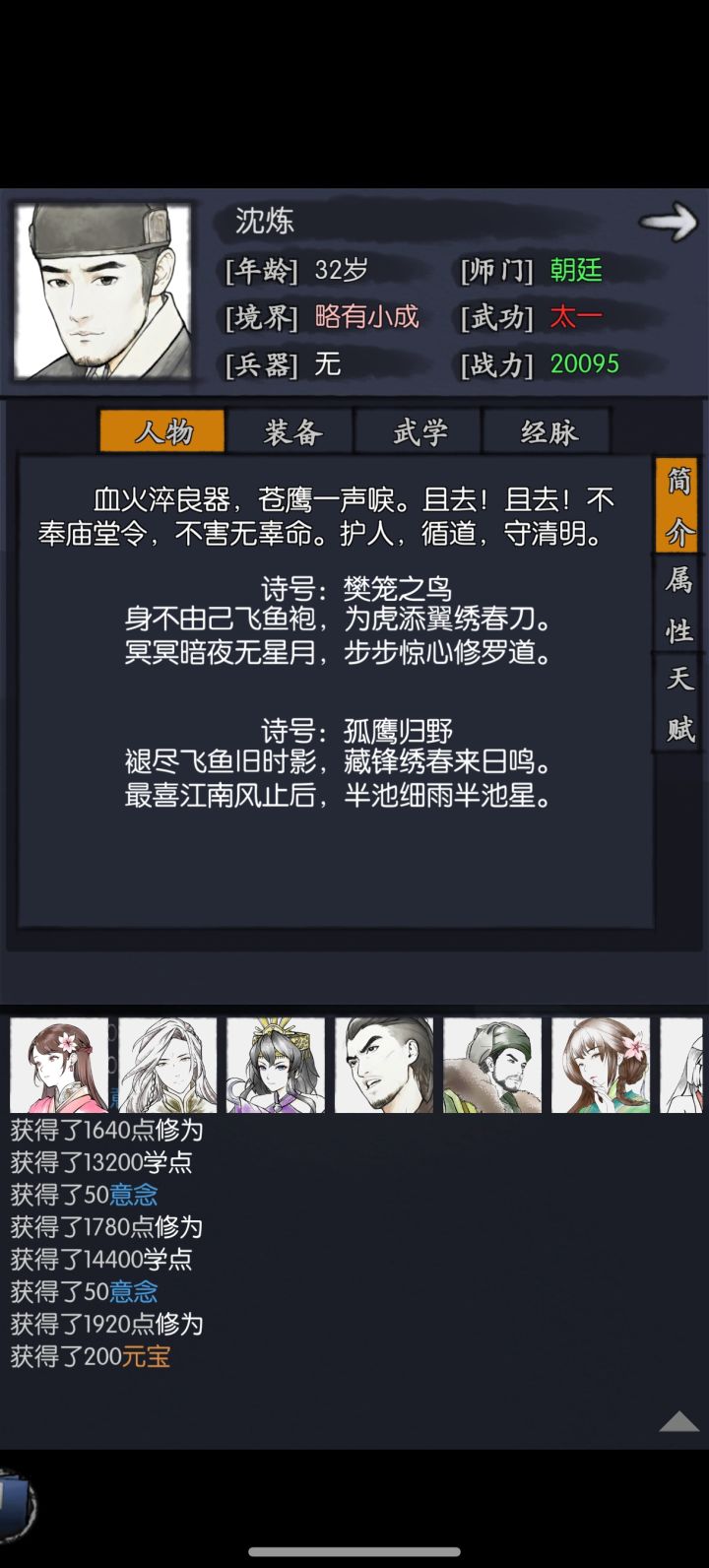 #沈炼攻略 丁修拉了三脉一内(2-1和2-2都点不满),沈练准备2-1点满,2-2就一级不拉了,1-1和1-2只开了心魔(等丁修返场吧)。微氪想要活动侠客还是难受