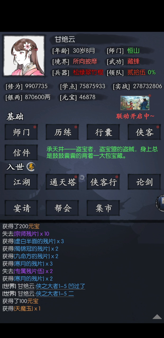 翻了一下之前之所以没用灵儿...是因为小符定序符锁血,谛燎含玉女生减75%女生伤害...卤菜味心法给男生也加武免,灵儿一鞭下去才100w伤害谁也打不动,小符还有个乘风,就把蓉灵换掉了 用仪其实只起到保护素素的作用啦...因为速度快不过卤菜味,所以仪瑶没机会明目陆的迷尘送葬。但是该说不说,仪很好地完成啦任务!! 对不对,把锁血的和讨人厌的杀掉,不还是一拳一个小朋友!!